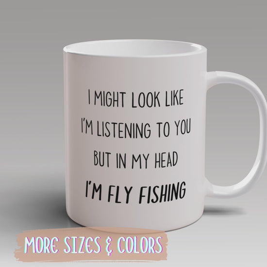 I Might Look Like I’m Listening to You But in My Head I’m Fly Fishing Mug – Funny Fisherman Gift | Custom Made Coffee Cup
