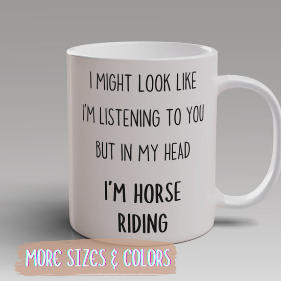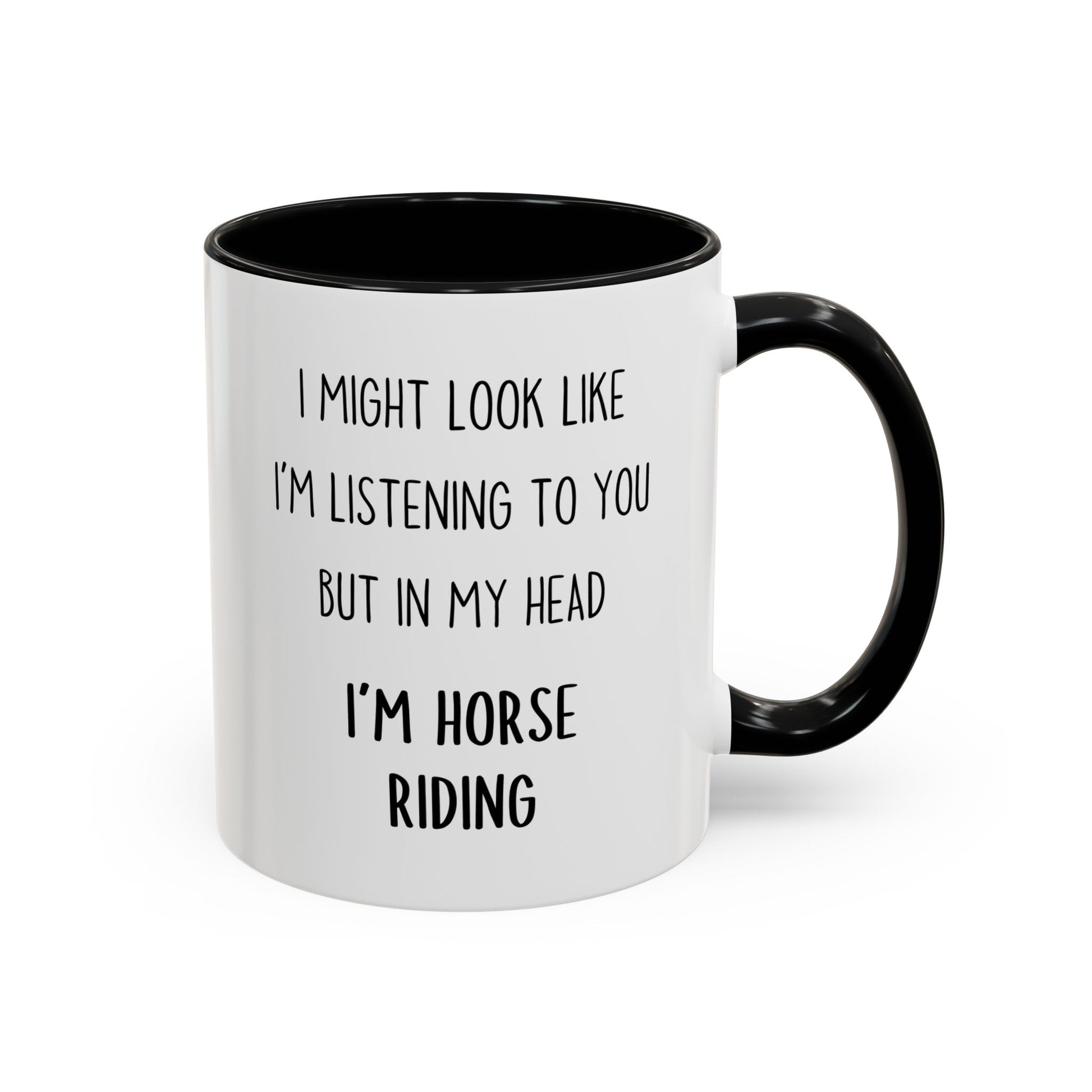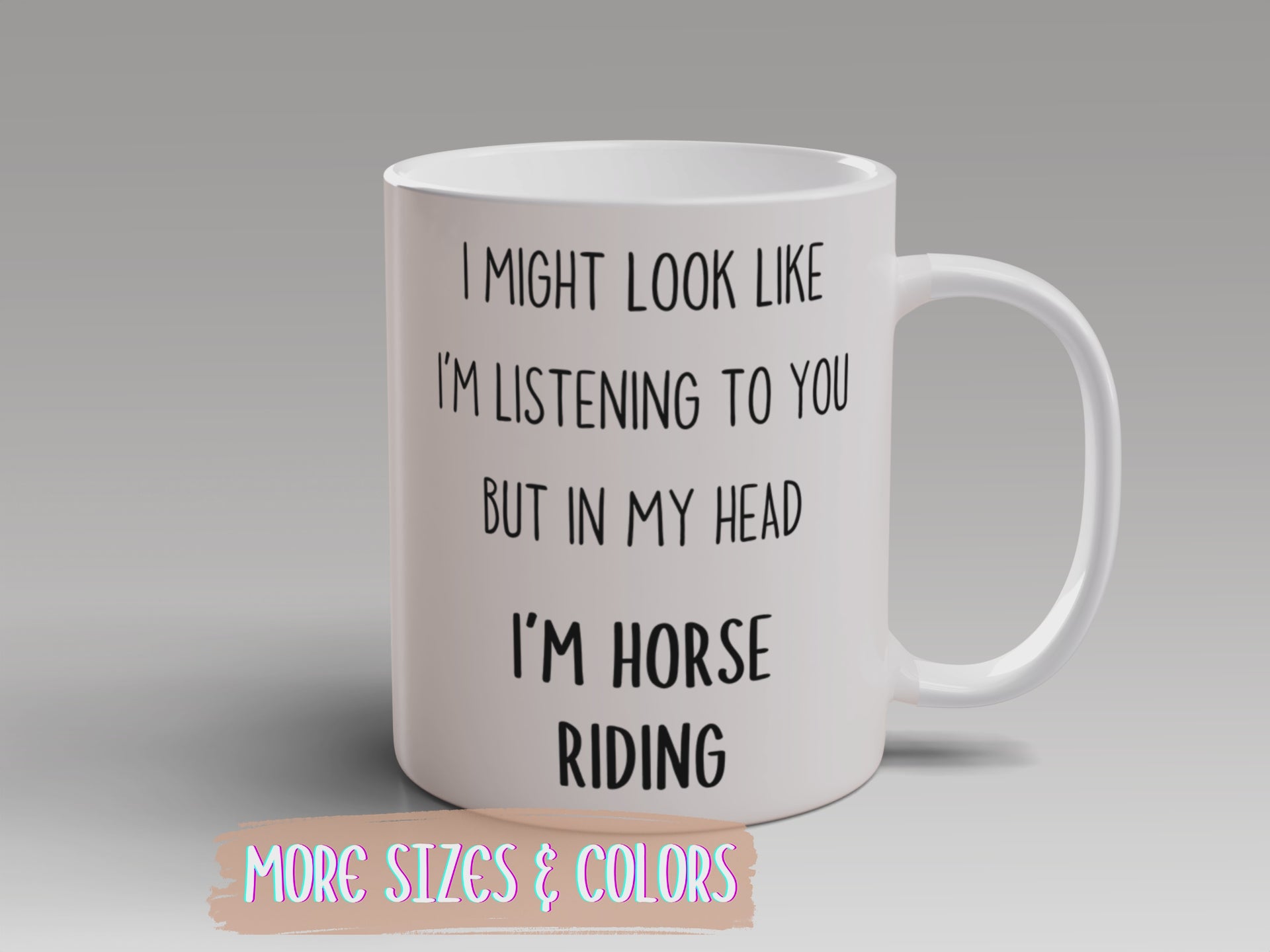 If your heart belongs to the stable, this “I Might Look Like I’m Listening to You, But in My Head I’m Horse Riding” mug is made just for you. 🐎☕