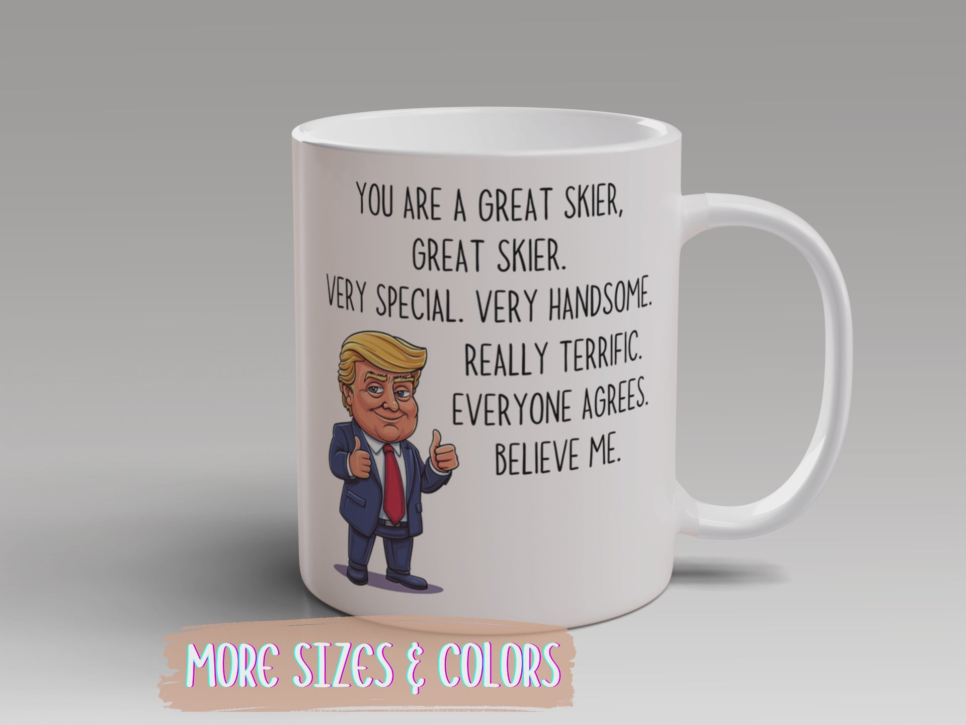 Featuring a playful caricature-style design and a confident quote, this custom made mug is perfect for ski lovers, mountain adventurers, or anyone who rules the slopes. Whether it’s for a ski trip, birthday, or holiday, this funny custom mug is guaranteed to make them smile — because everyone agrees, they’re really terrific.