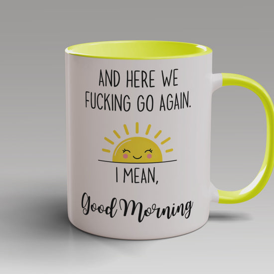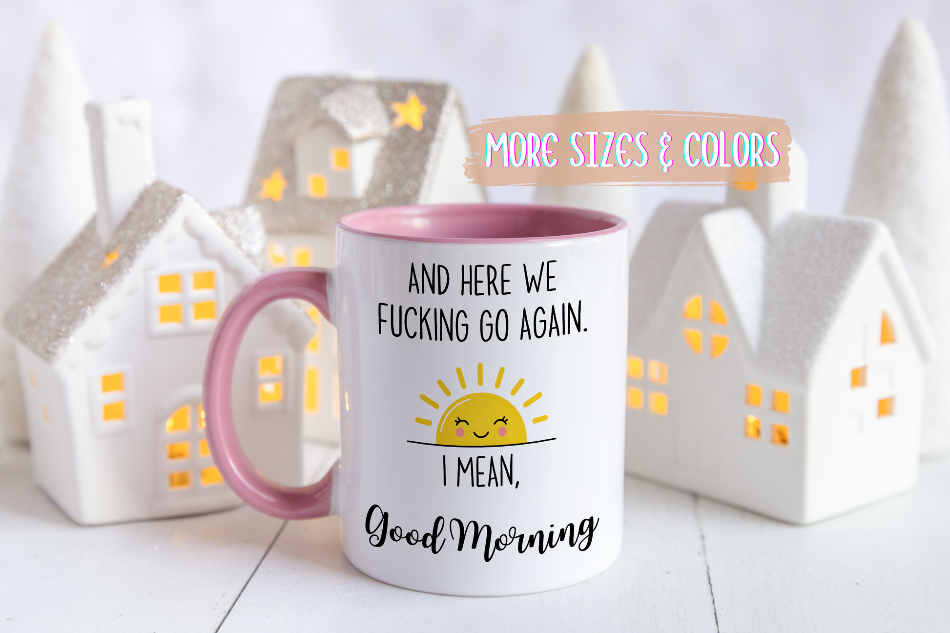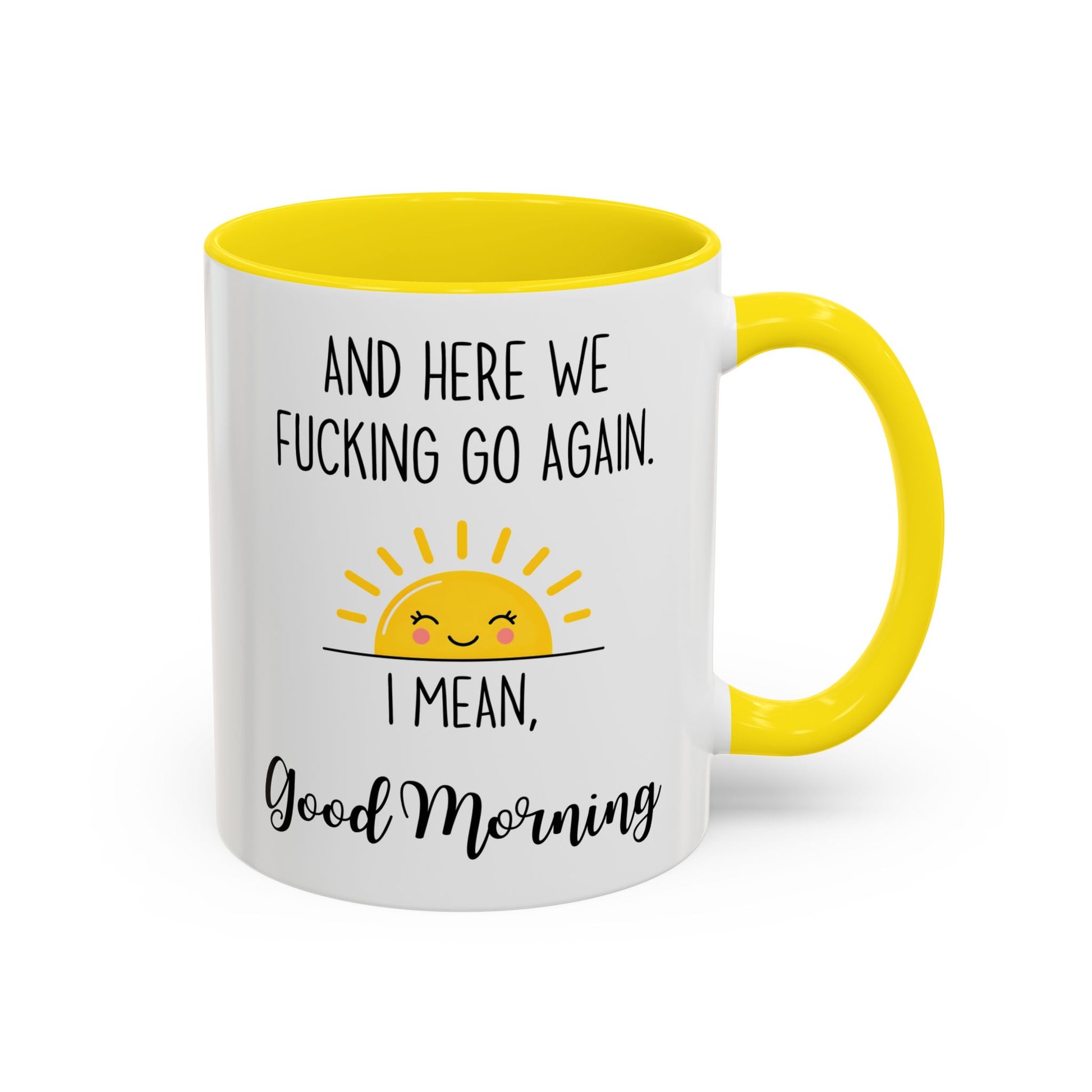 Funny Morning Mug – “And Here We Go Again... I Mean, Good Morning” | Sarcastic Coffee Cup, Adult Humor Gift, Office Mug