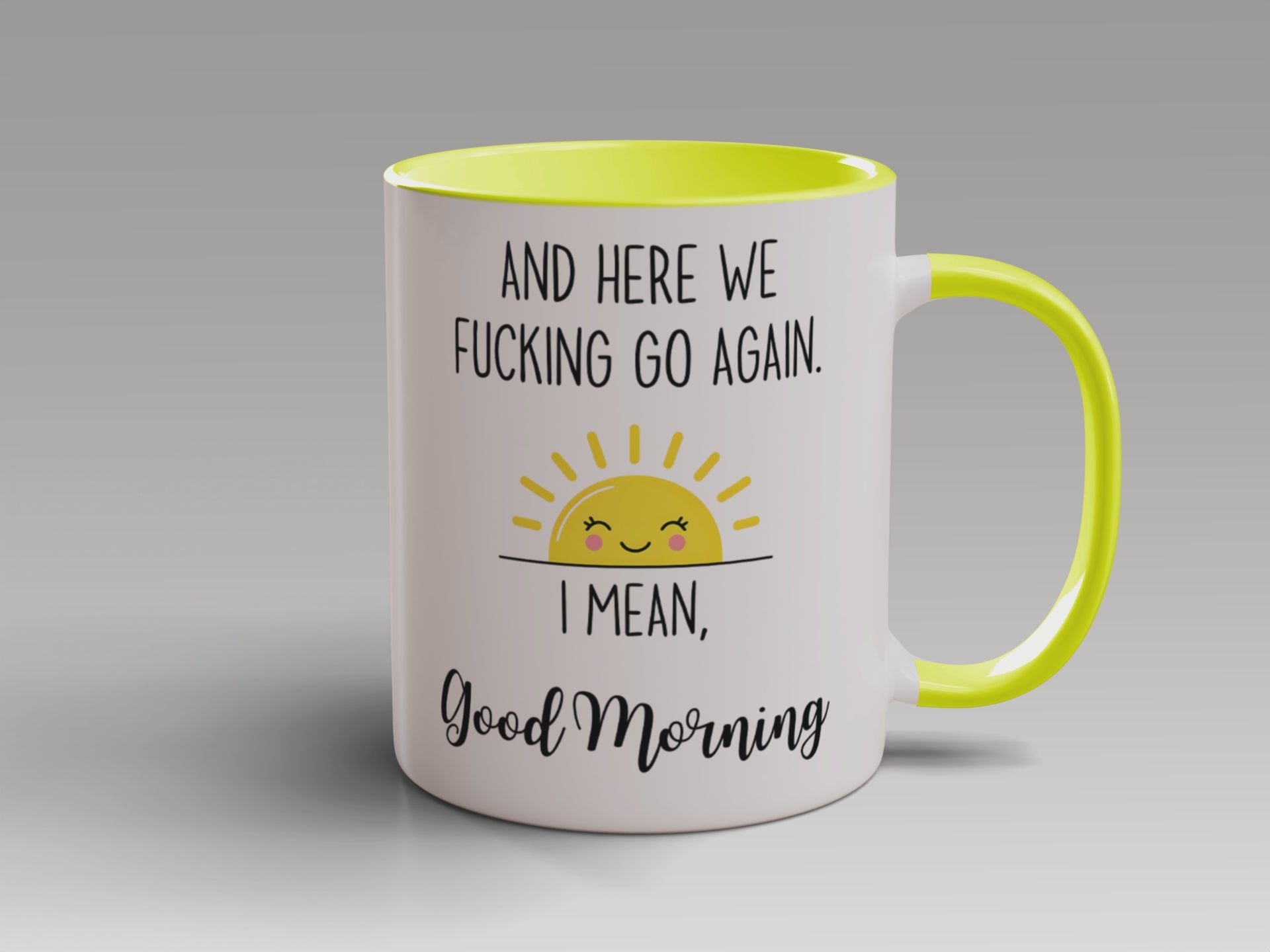 This Funny Morning Mug perfectly captures that “here we go again” feeling with the phrase: “And here we go again... I mean, good morning.” It’s the ideal mix of sarcasm and sunshine, designed for people who tackle chaos with caffeine and humor.