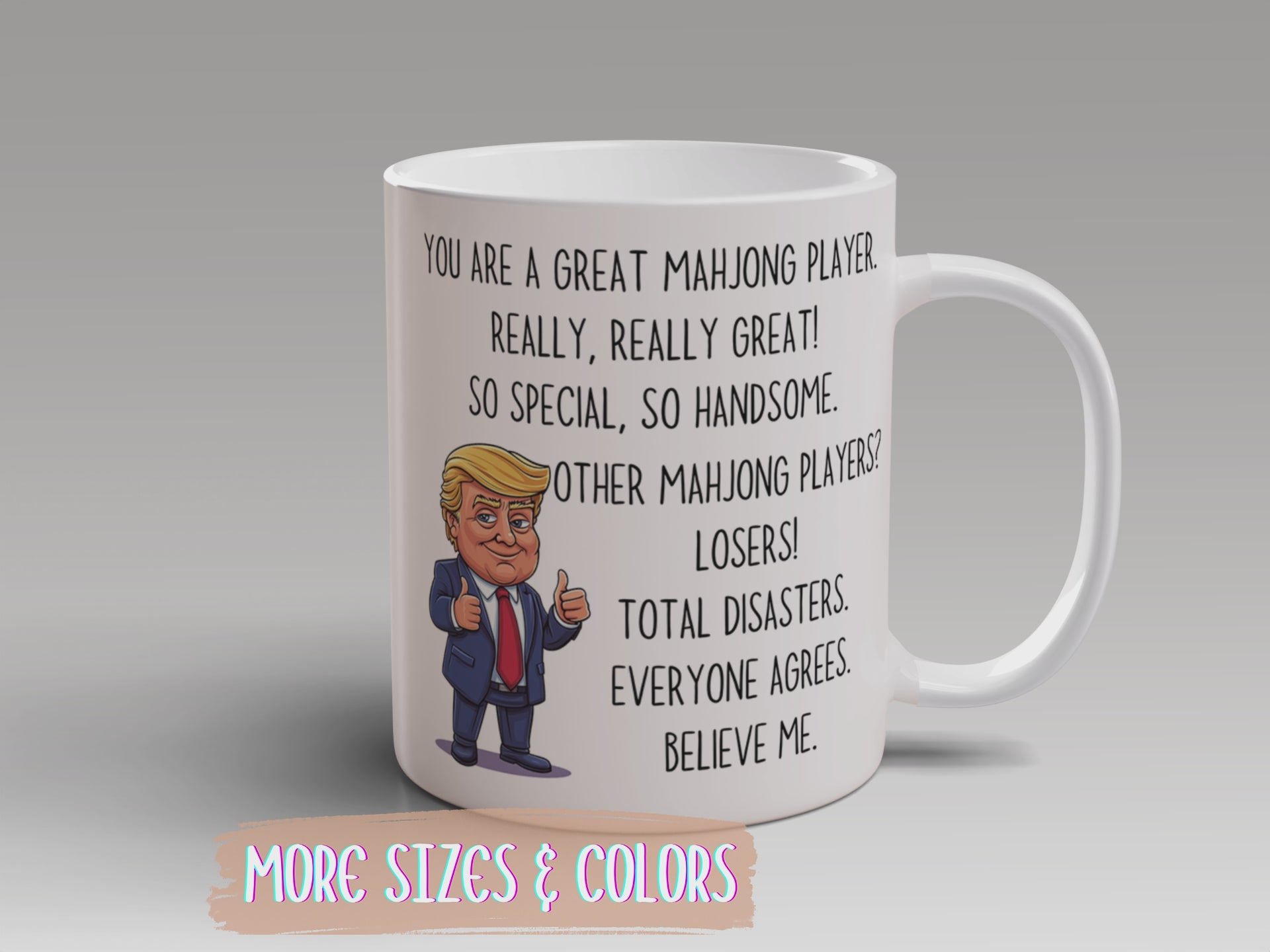 This custom made mug features a bold caricature and a laugh-out-loud quote that’s sure to make any Mahjong player smile after their next big win. It’s the ideal custom mug for game nights, Mahjong tournaments, or casual get-togethers with friends.