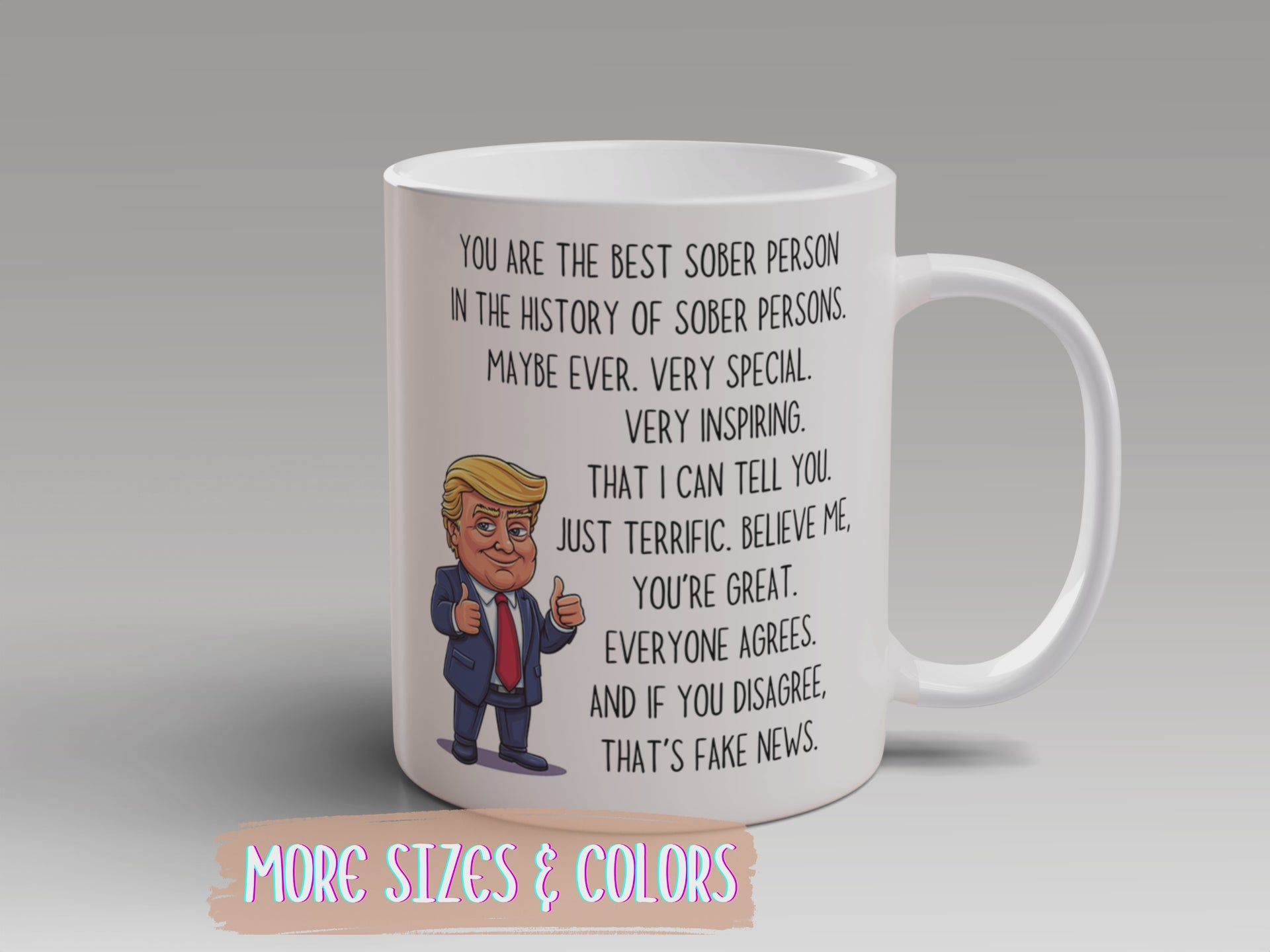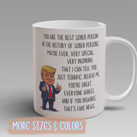 Perfect for sober friends, recovery supporters, AA sponsors, or anyone celebrating their sober anniversary, this mug is both motivational and hilarious. Everyone agrees — you’re great. And if they disagree? That’s fake news!