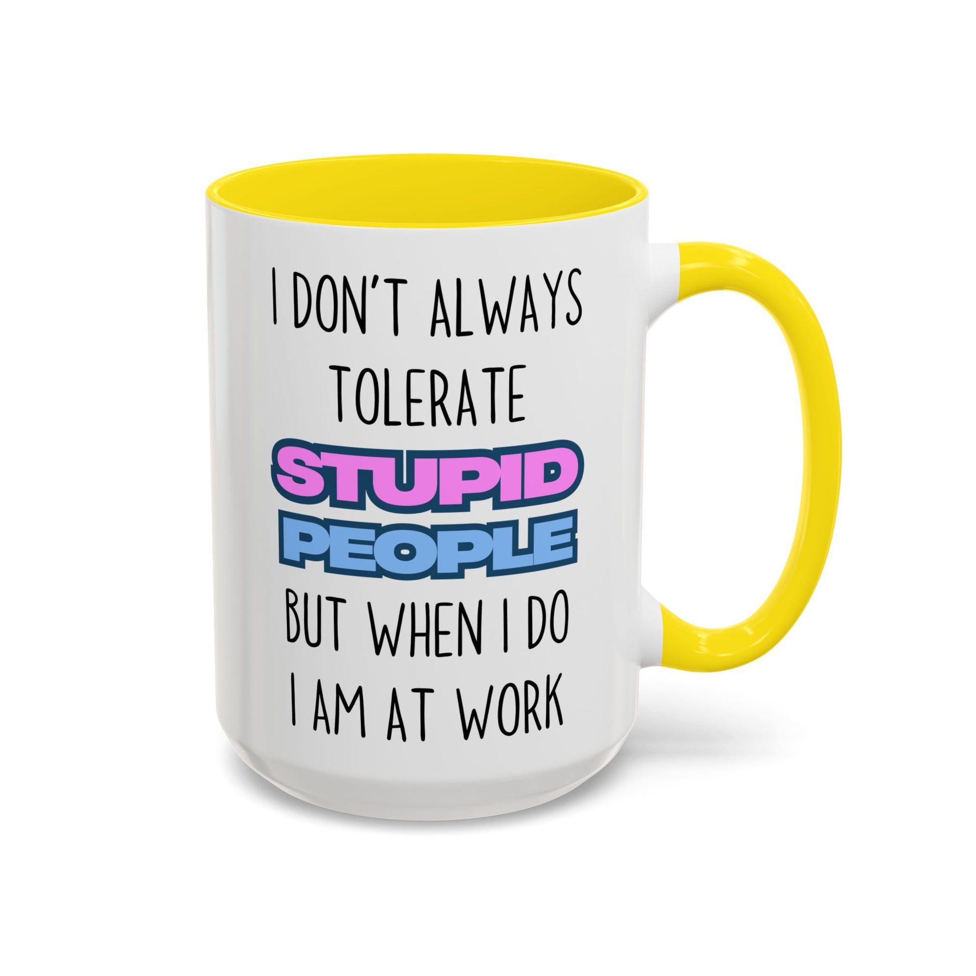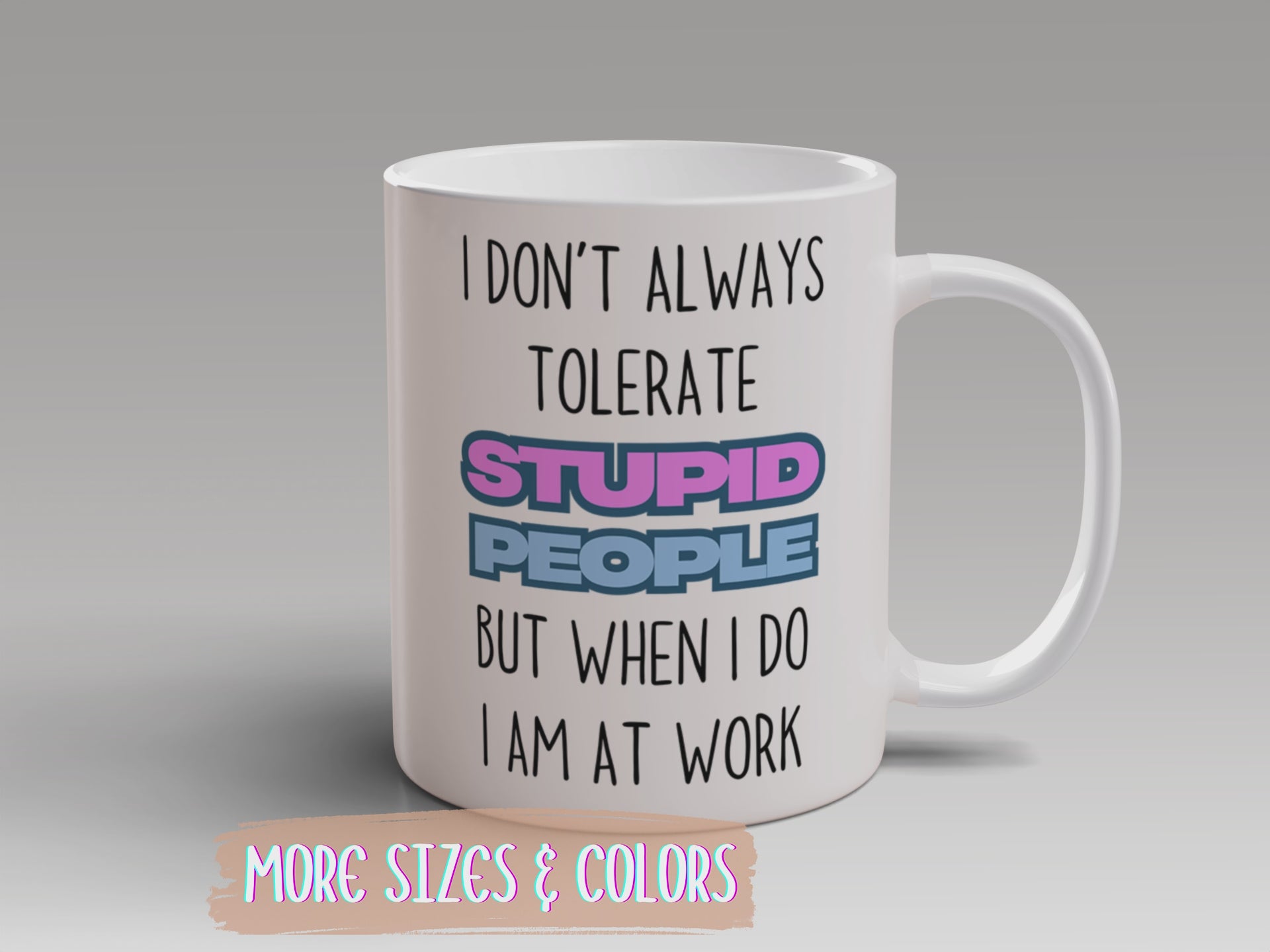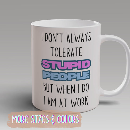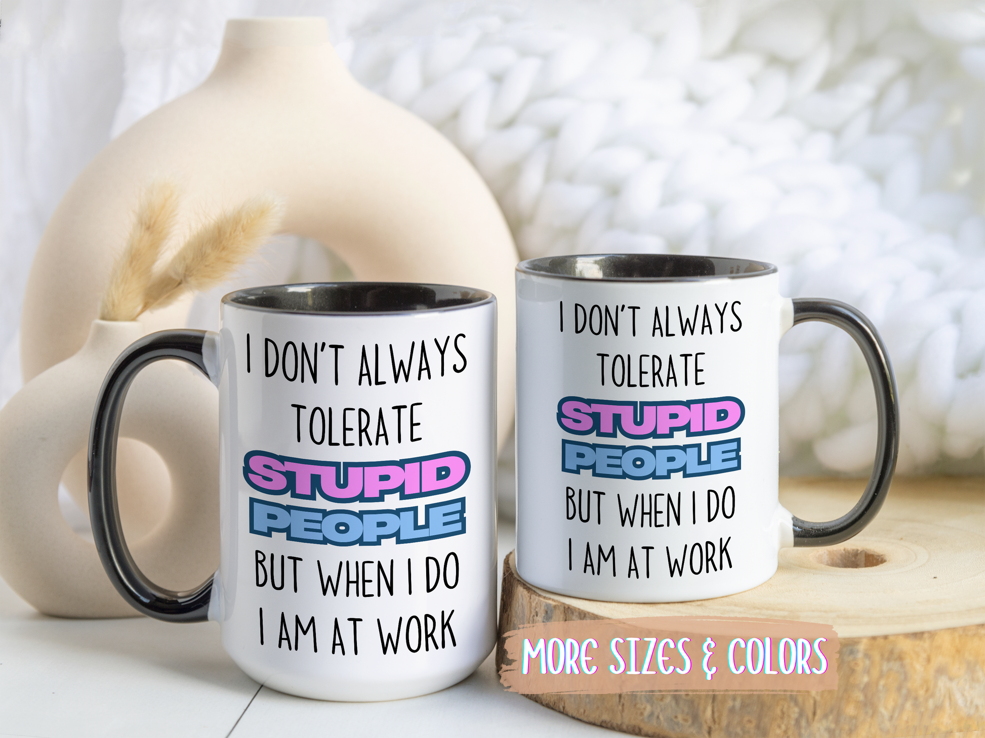 Funny Work Mug – “I Don’t Always Tolerate Stupid People” Custom Made Coffee Cup | Office Humor Gift for Coworkers