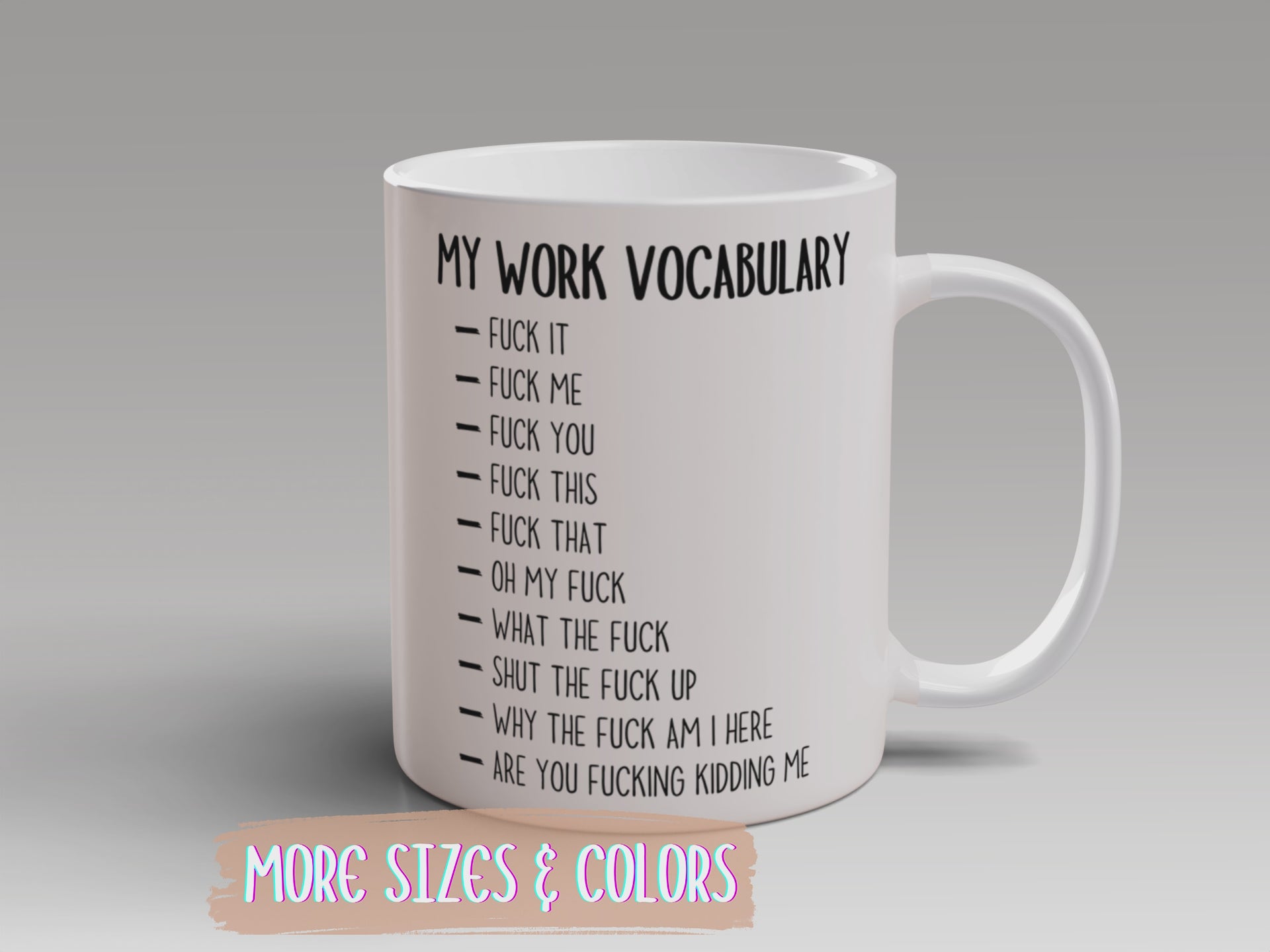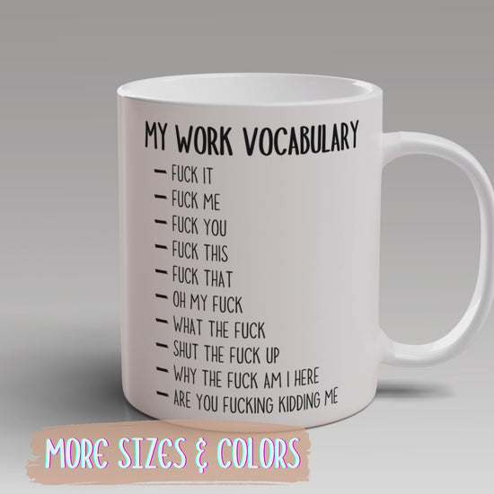 Funny Work Mug – “My Work Vocabulary” Custom Made Coffee Cup | Sarcastic Office Humor Gift for Coworkers & Adults