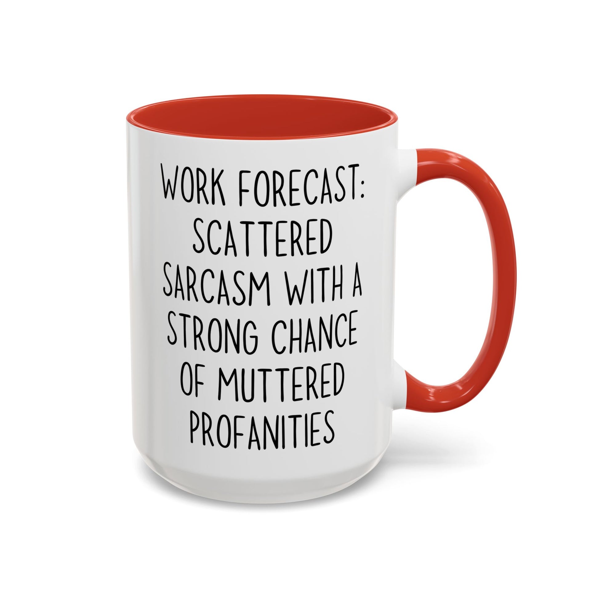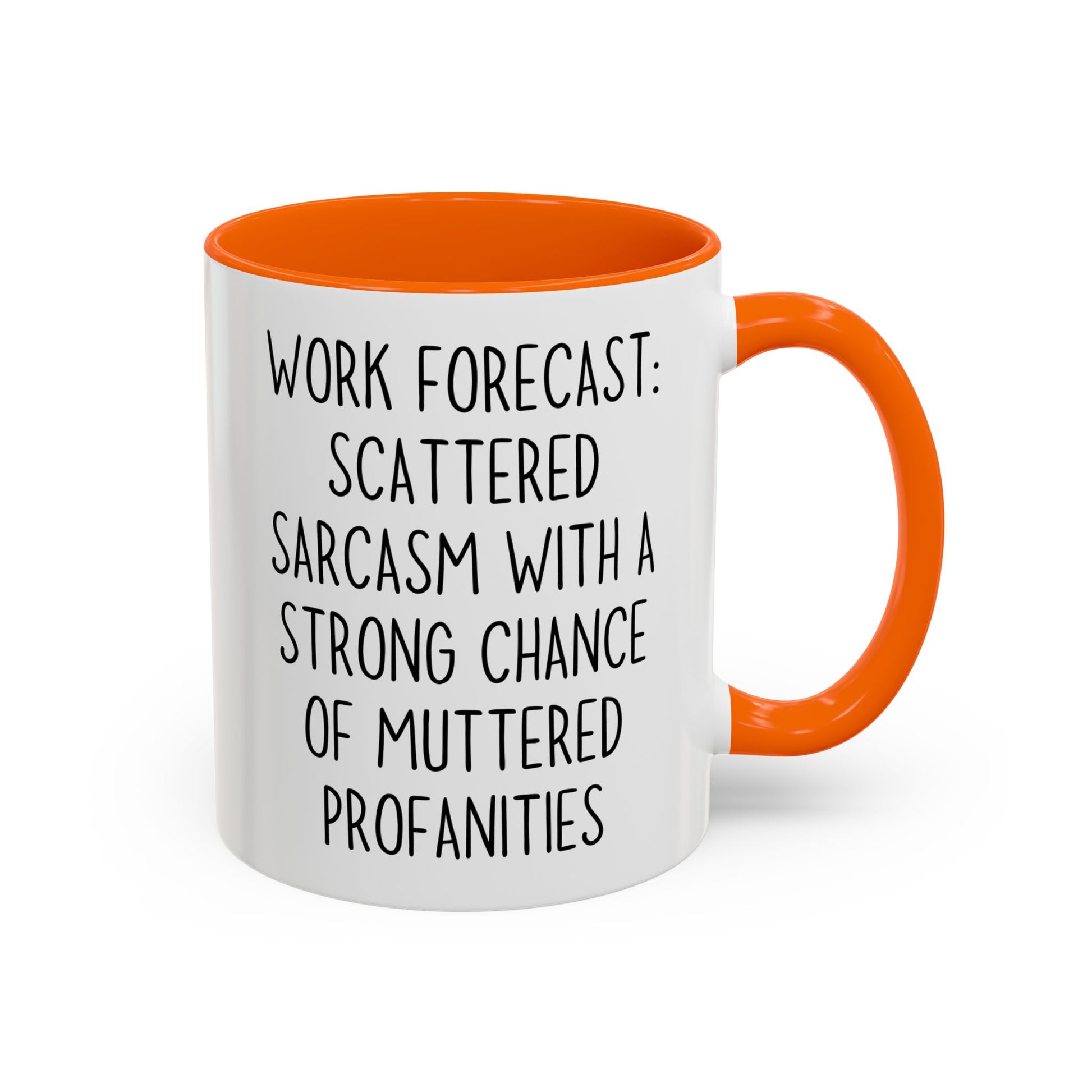 Funny Work Mug – “Work Forecast: Scattered Sarcasm With a Strong Chance of Muttered Profanities” | Office Humor Coffee Cup, Sarcastic Coworker Gift
