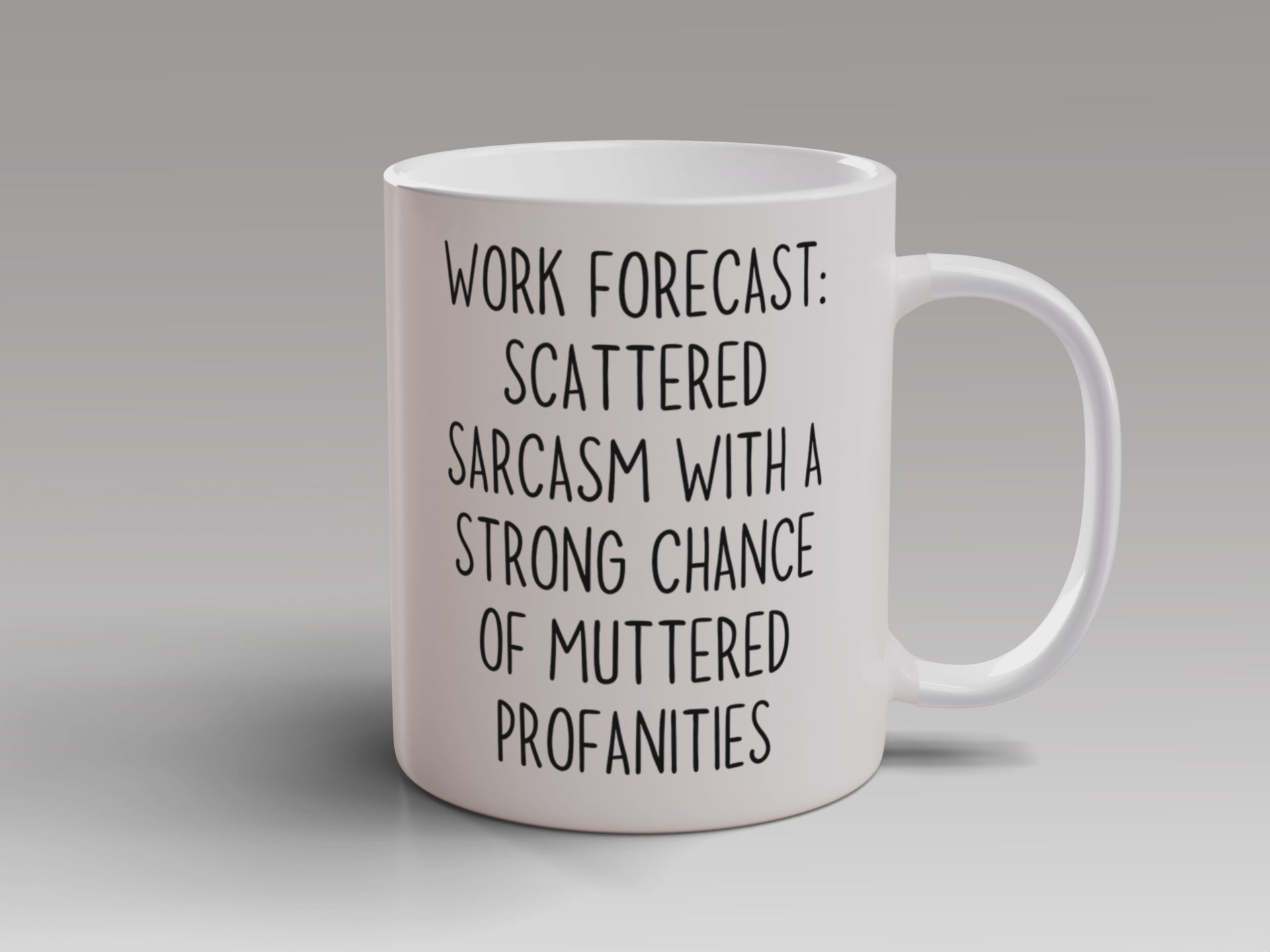 This Funny Work Mug says exactly what every employee feels: “Work forecast: scattered sarcasm with a strong chance of muttered profanities.” It’s the perfect daily dose of honesty for the office, helping you power through meetings, emails, and questionable decisions — one sip at a time.