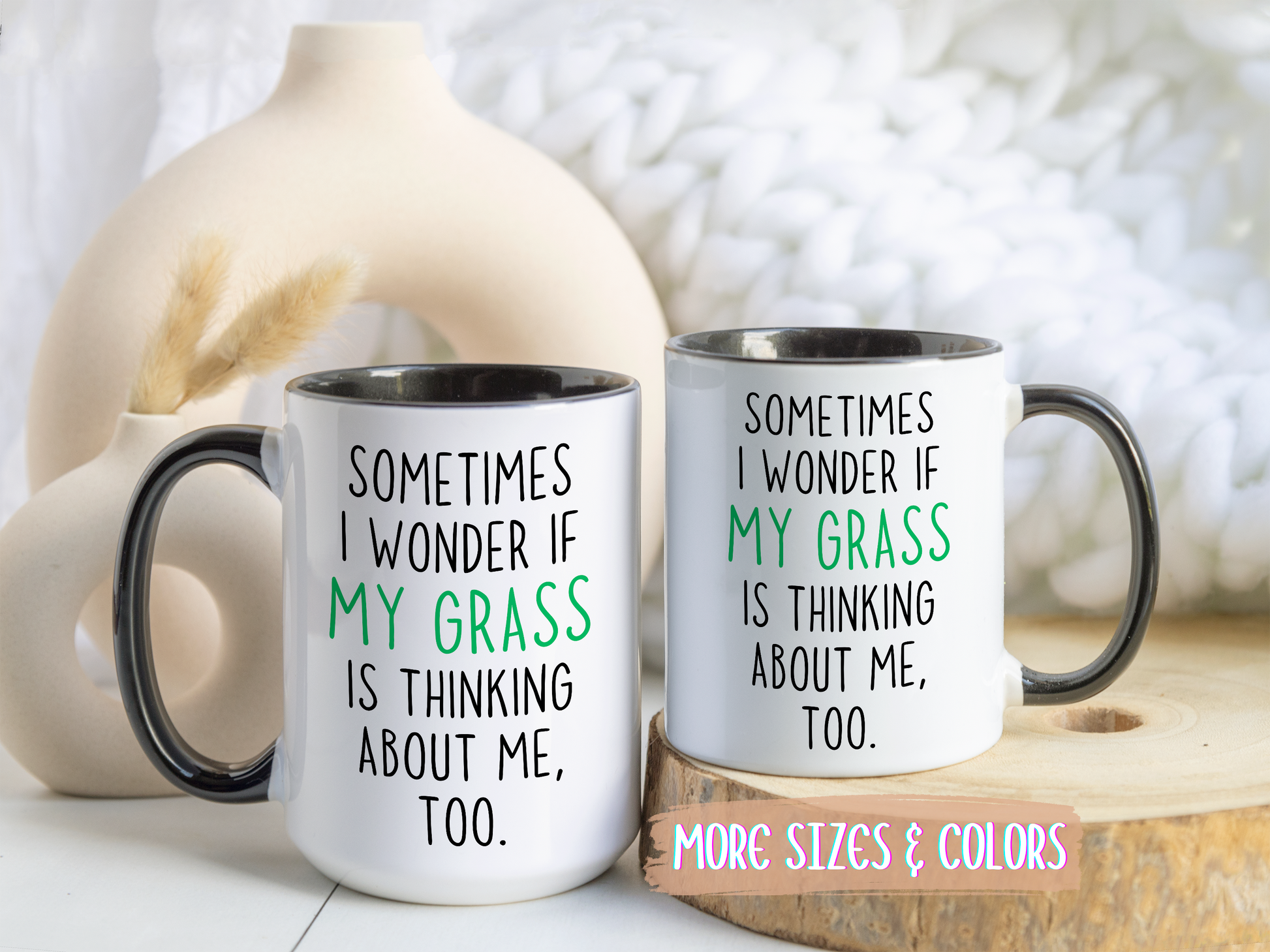 Funny Grass Mug | Sometimes I Wonder If My Grass Is Thinking About Me Too Custom Made Coffee Cup