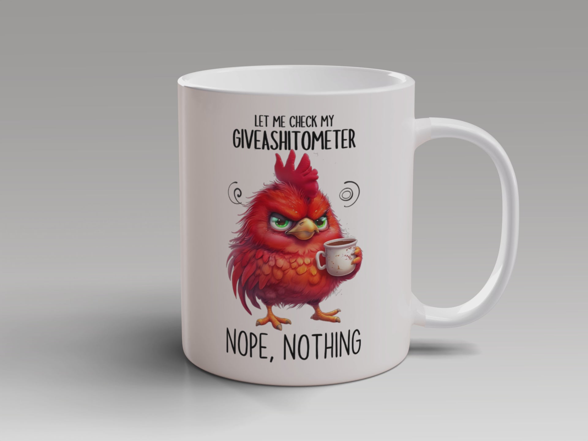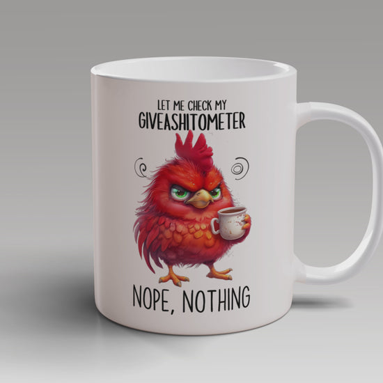 Funny Coffee Mug – “Let Me Check My Giveashitometer... Nope, Nothing” | Sarcastic Grumpy Bird Cup, Office Humor Gift for Coworkers