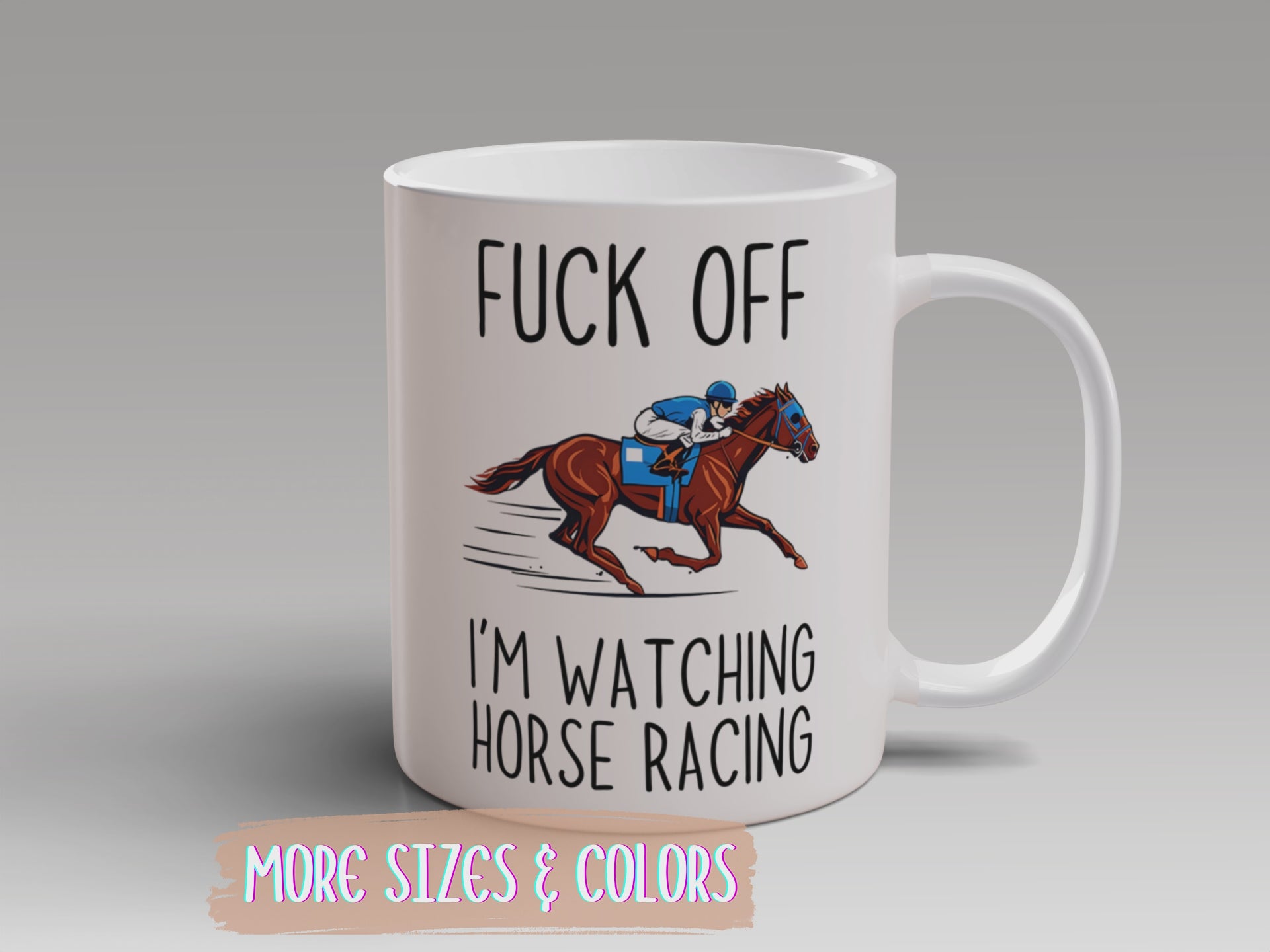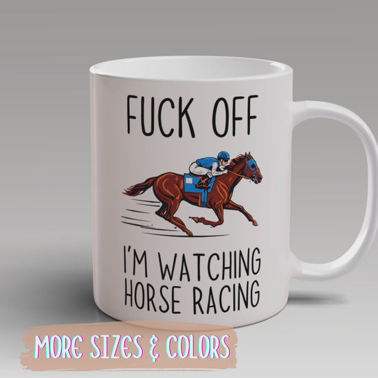 Go Away, I’m Watching Horse Racing Mug | Funny Horse Lover Gift | Custom Made Equestrian Coffee Cup