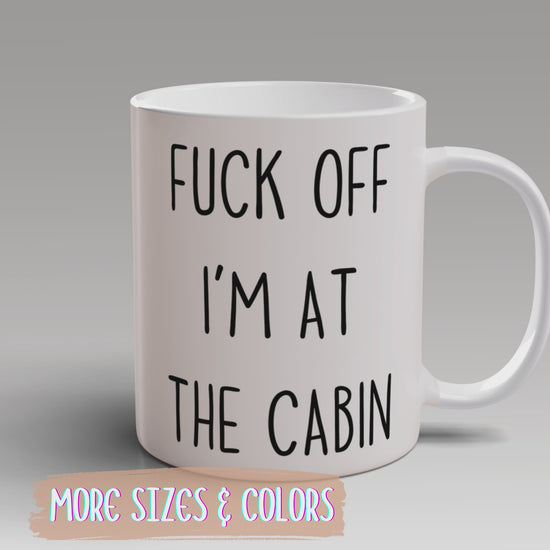 Go Away, I’m at the Cabin Mug | Funny Cabin Life Gift | Custom Made Camping Coffee Cup