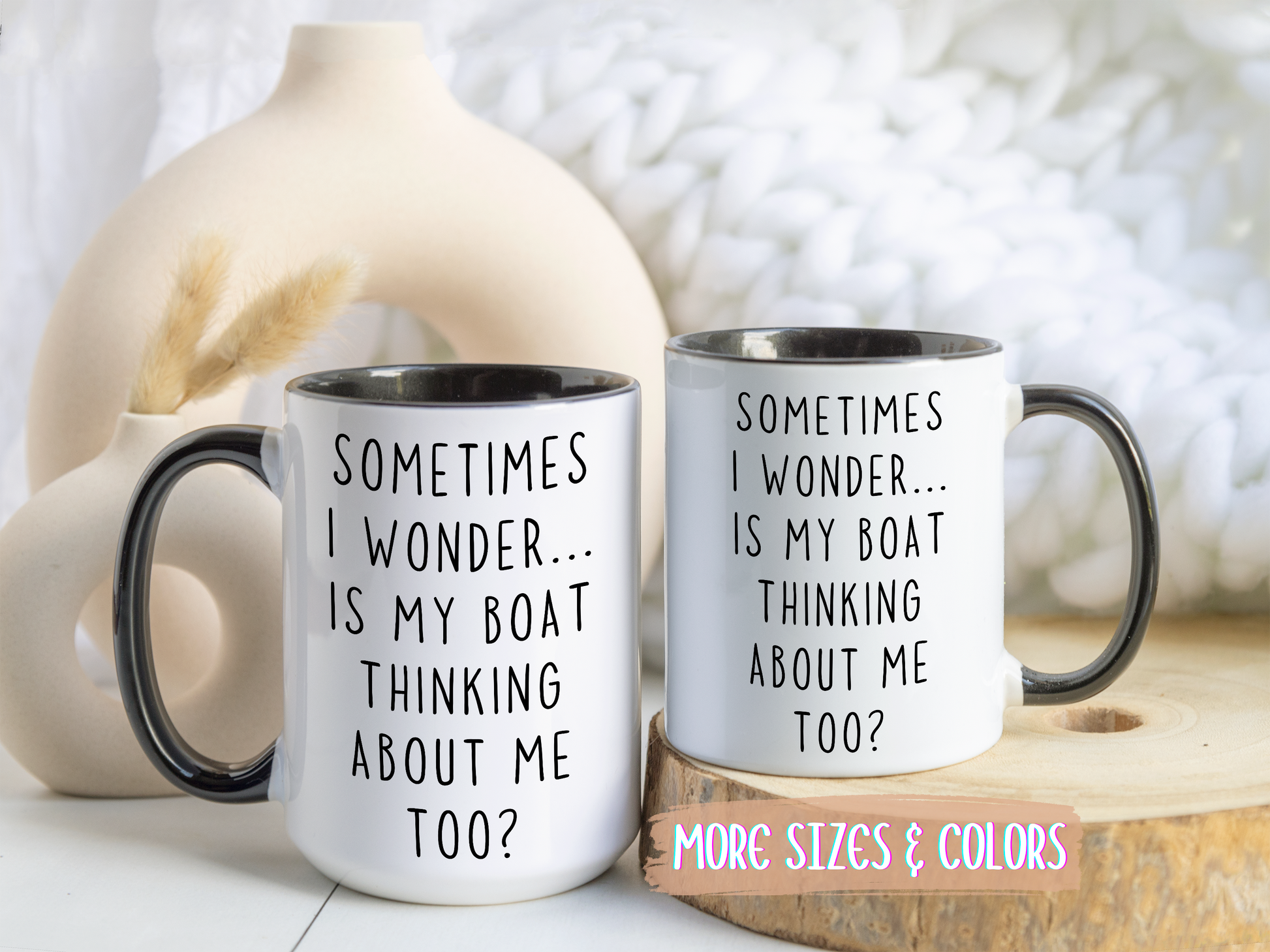 Sometimes I Wonder… Is My Boat Thinking About Me Too? Mug | Funny Boating Mug | Custom Made Lake Life Coffee Cup