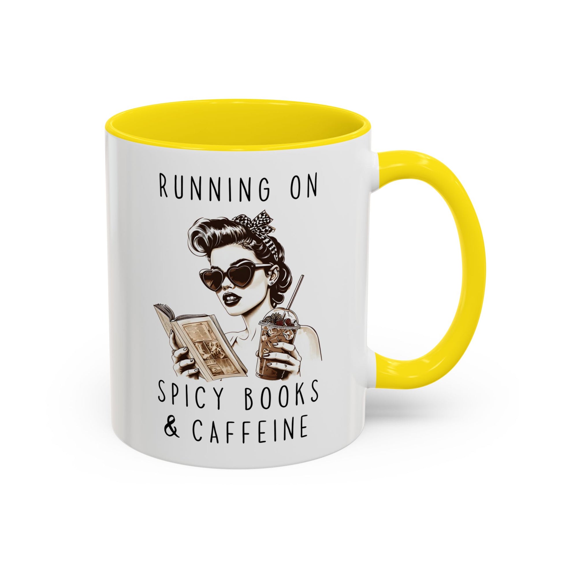 Running on Spicy Books and Caffeine Mug | Funny Book Lover Mug | Custom Made Reading Coffee Cup