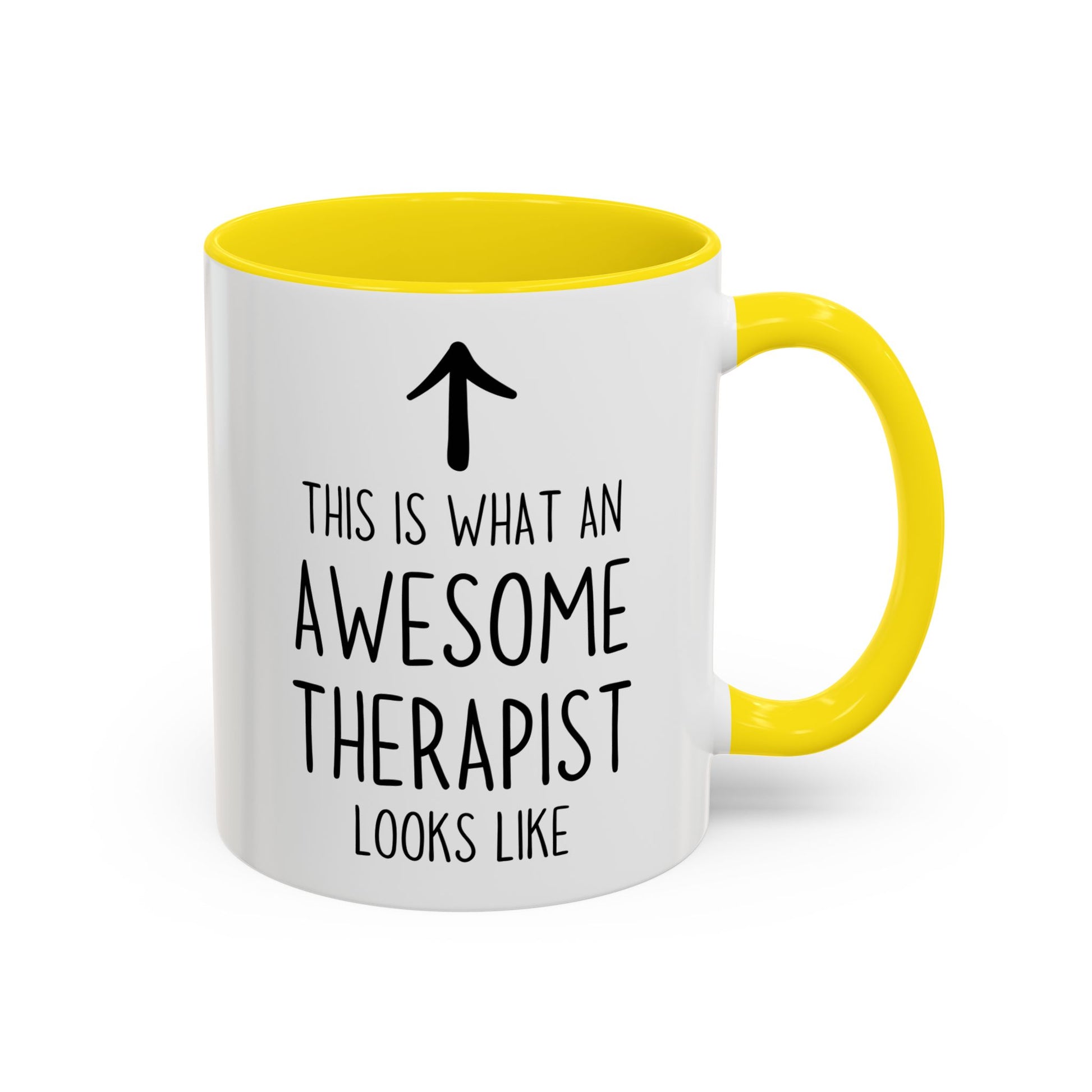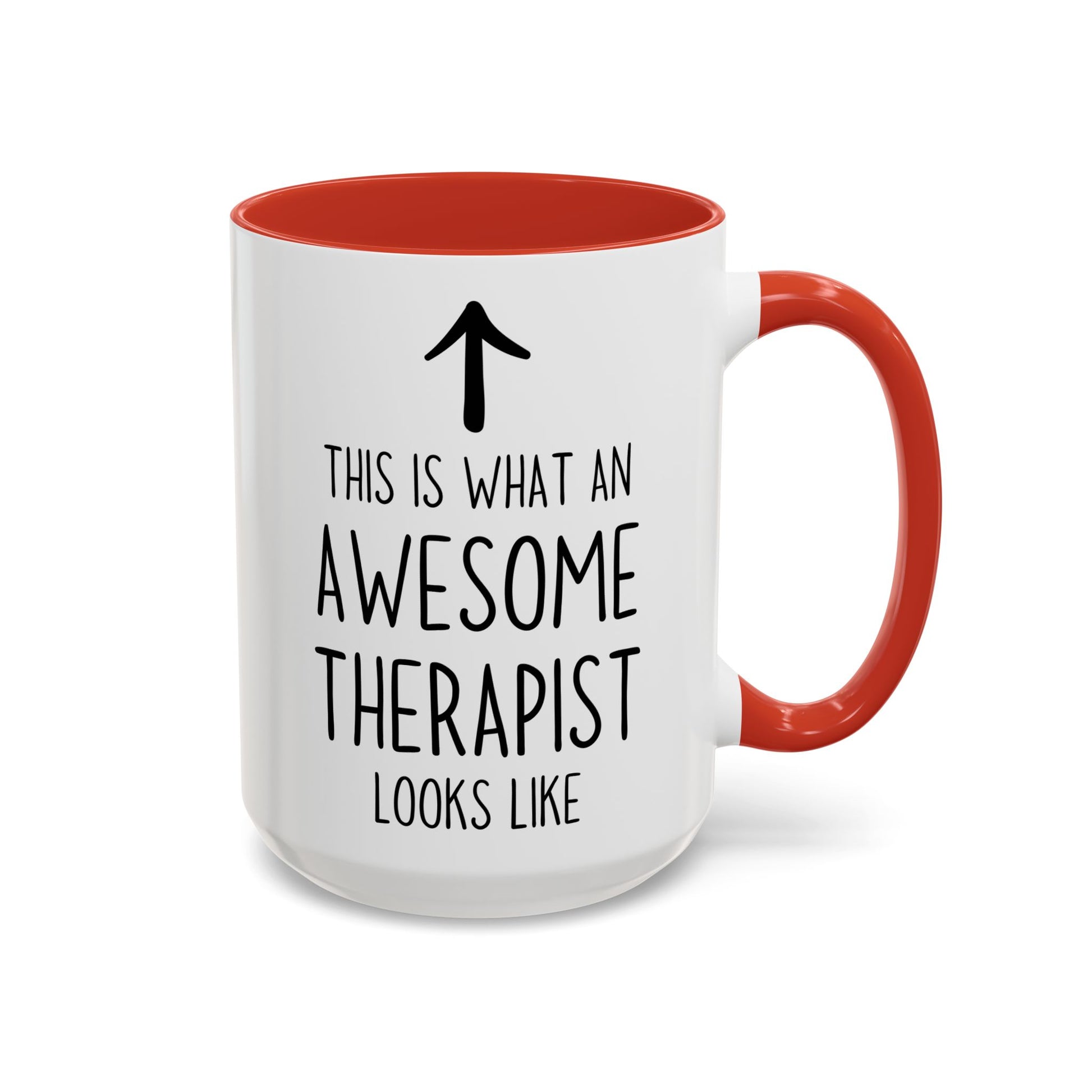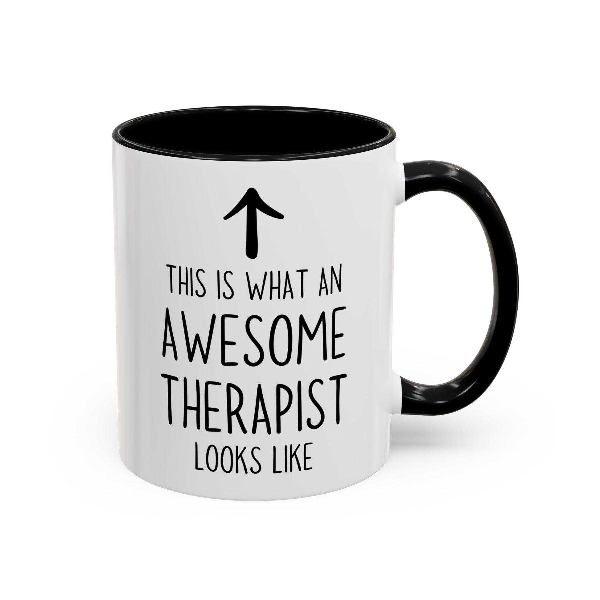 This This Is What An Awesome Therapist Looks Like mug is the perfect way to celebrate your favorite mental health professional. Featuring a simple design with bold text and a playful upward arrow, this custom made coffee cup makes a thoughtful, funny, and confidence-boosting gift for therapists, psychologists, counselors, and social workers.