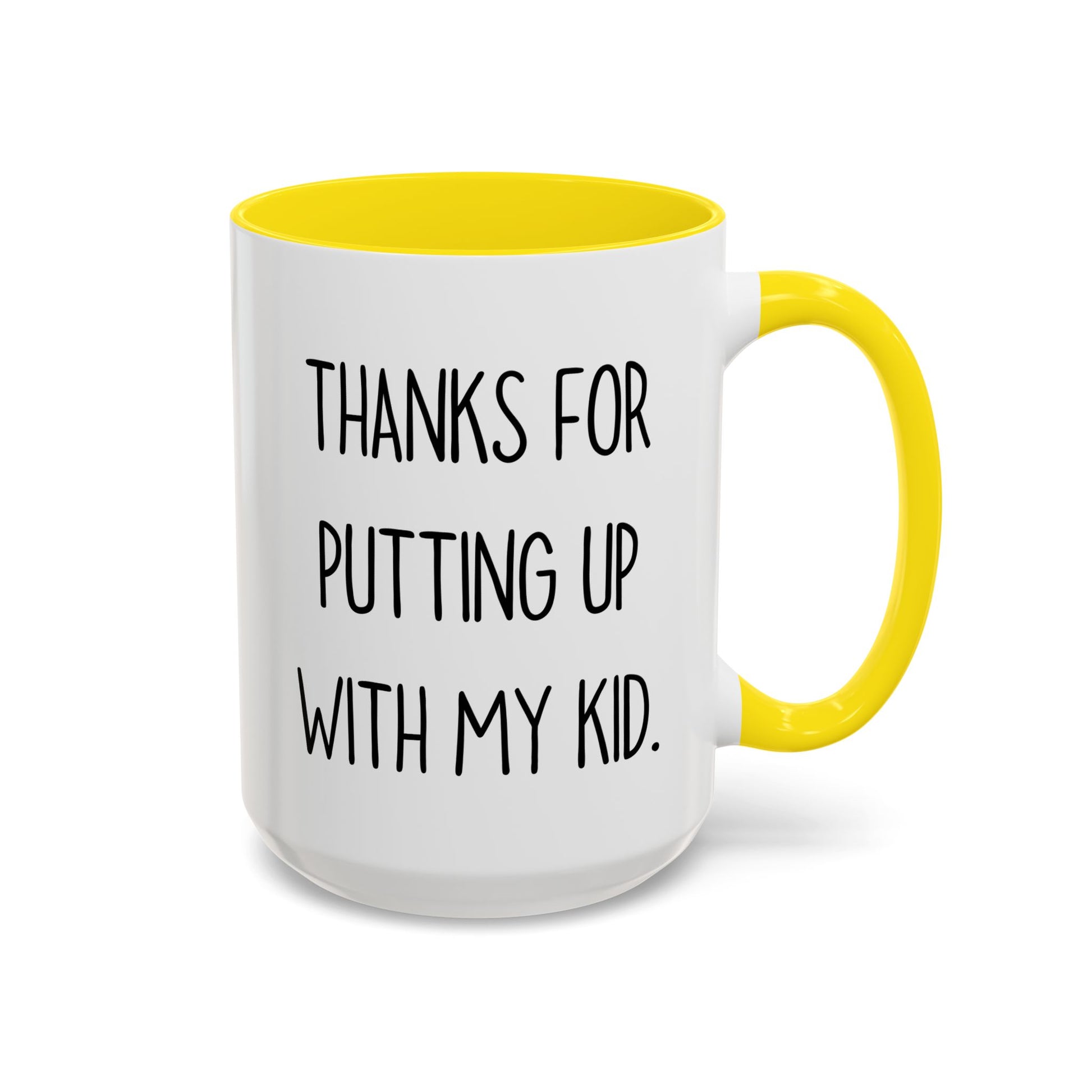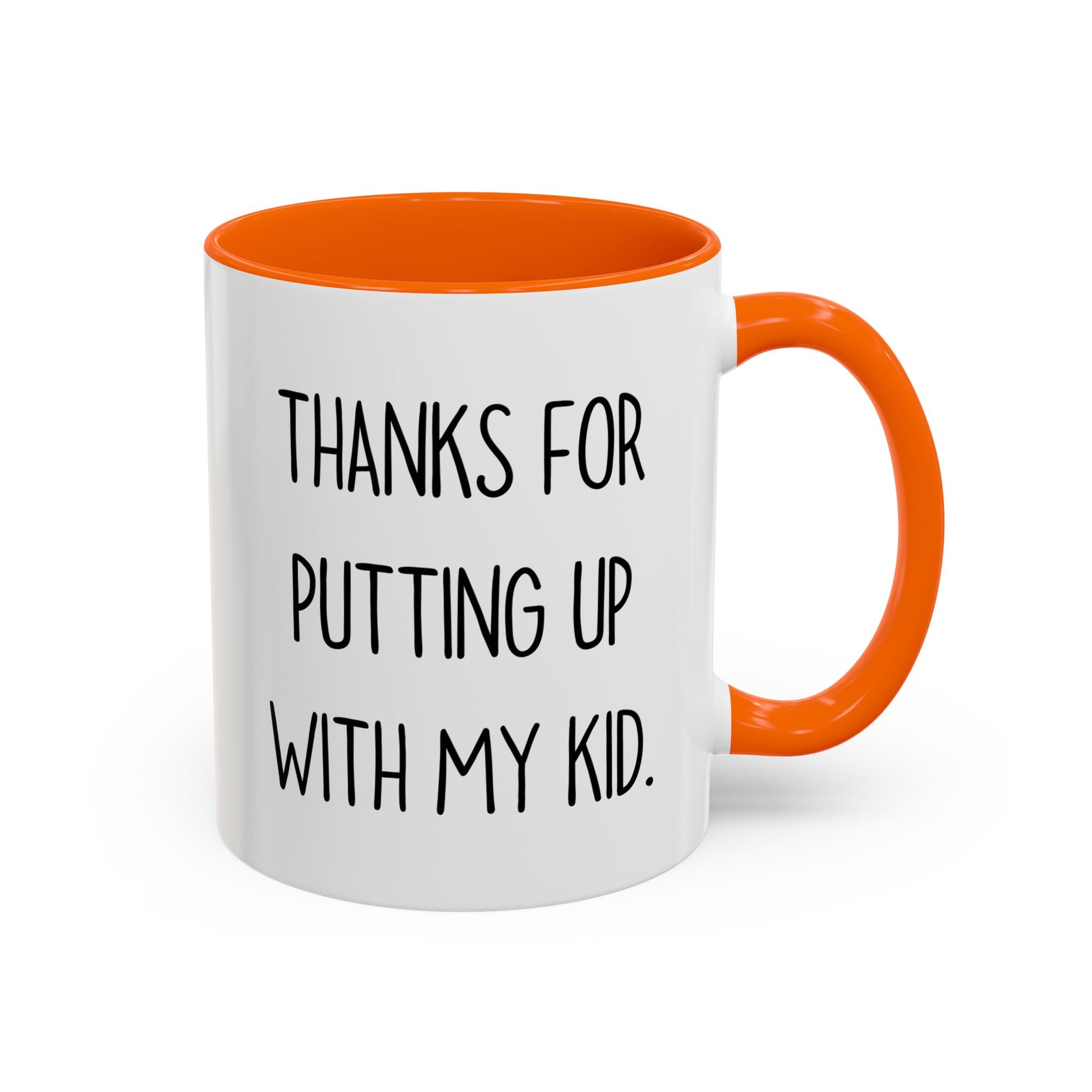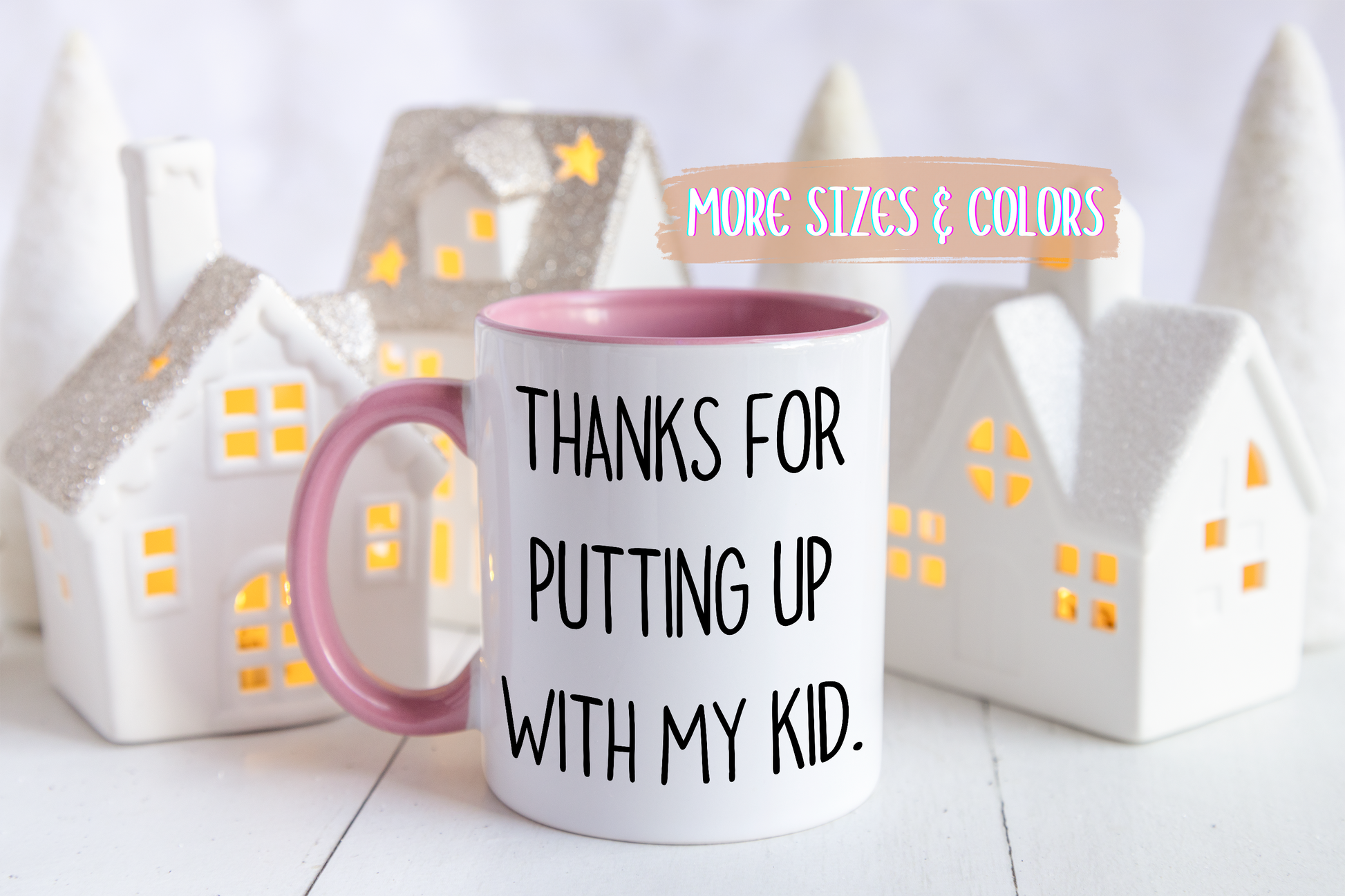 Thanks For Putting Up With My Kid Mug | Funny Teacher Gift | Custom Made Appreciation Coffee Cup