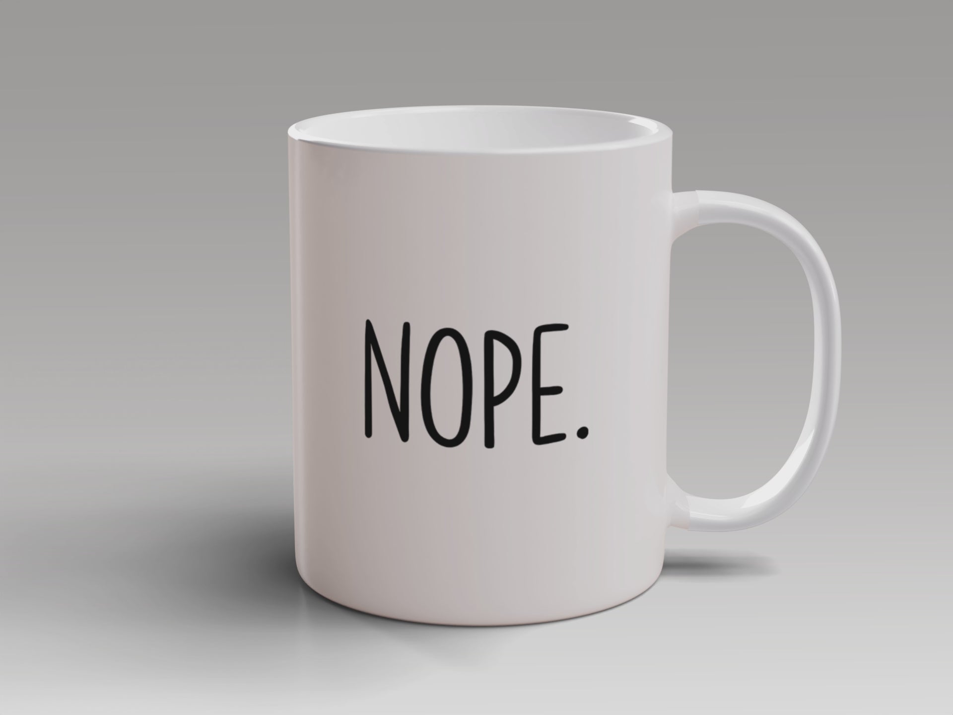Minimalist Funny Mug – “Nope.” | Sarcastic Coffee Cup, Simple Office Humor Gift, Introvert Mug, Sassy Quote Cup