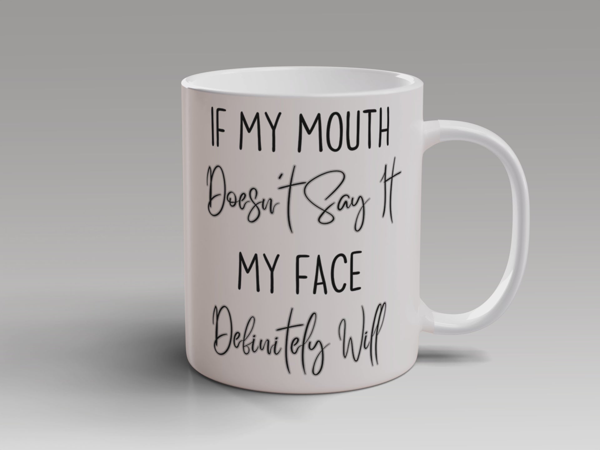 If My Mouth Doesn’t Say It My Face Definitely Will Mug – Funny Sarcastic Coffee Cup | Relatable Gift for Coworkers, Friends & Moms