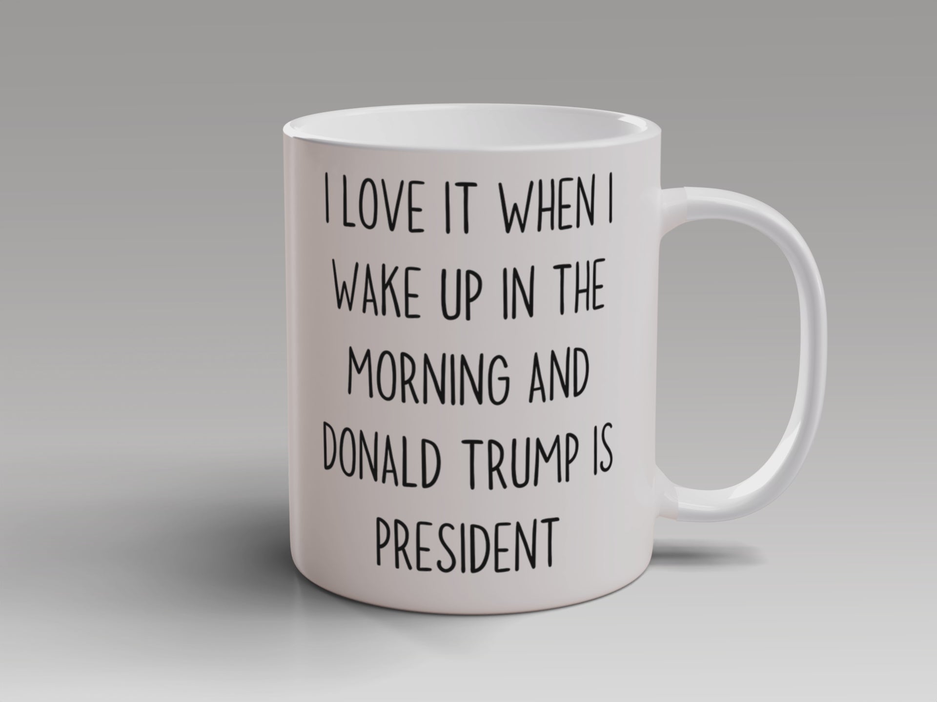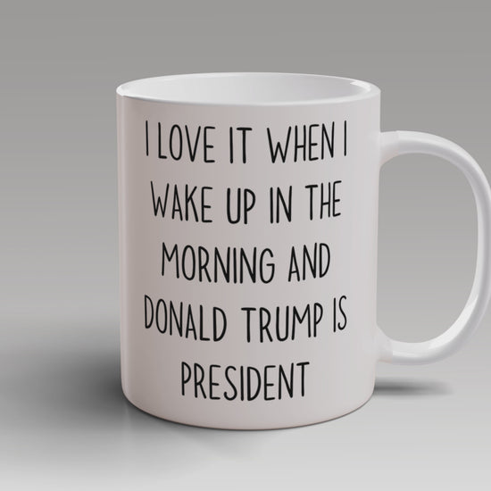 Funny Political Coffee Mug – “I Love It When I Wake Up in the Morning and the President Is Donald Trump” | Patriotic Gift for Him or Her