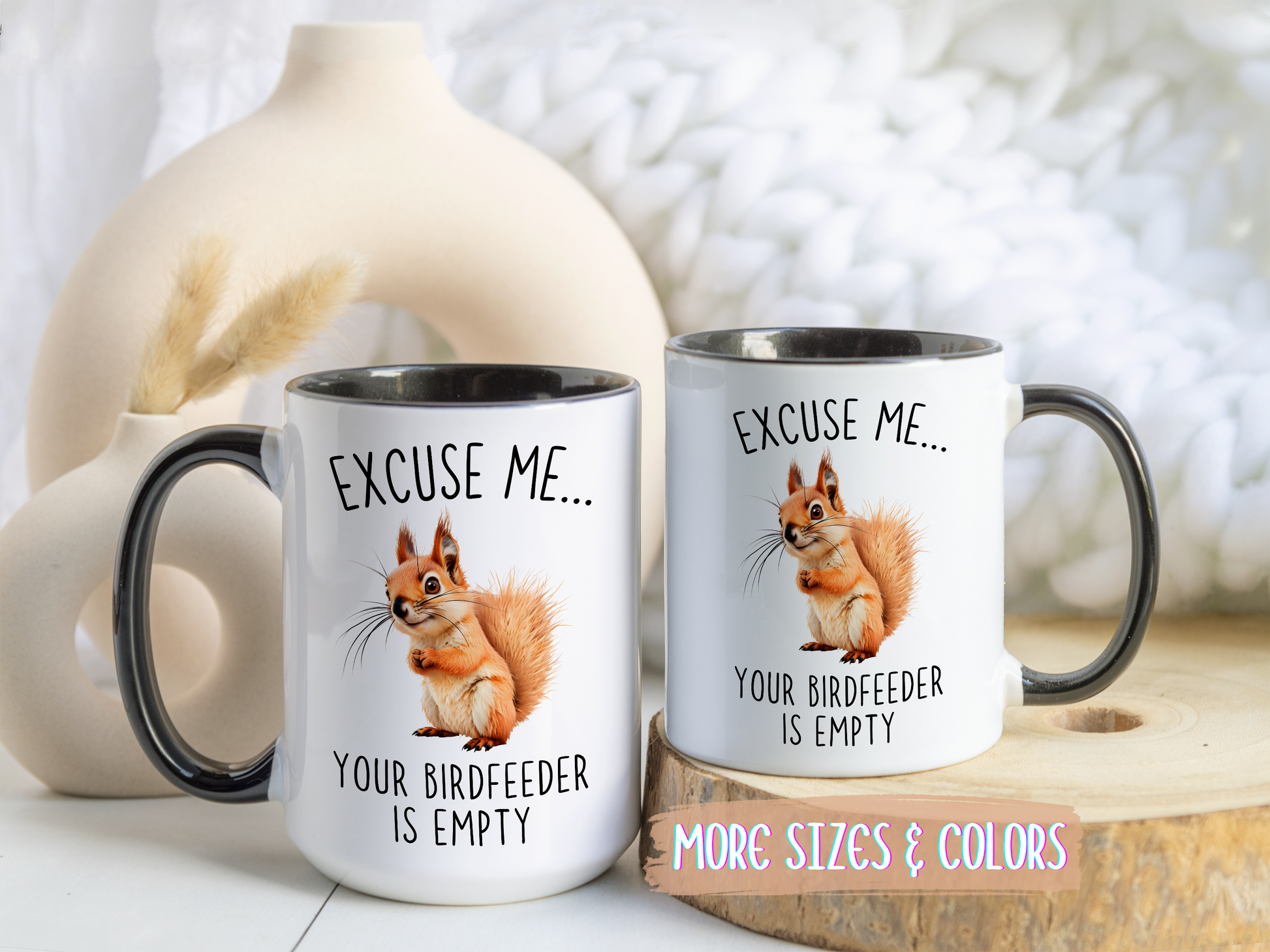 Excuse Me… Your Birdfeeder Is Empty Mug | Funny Squirrel Coffee Cup | Custom Made Gift for Animal & Nature Lovers