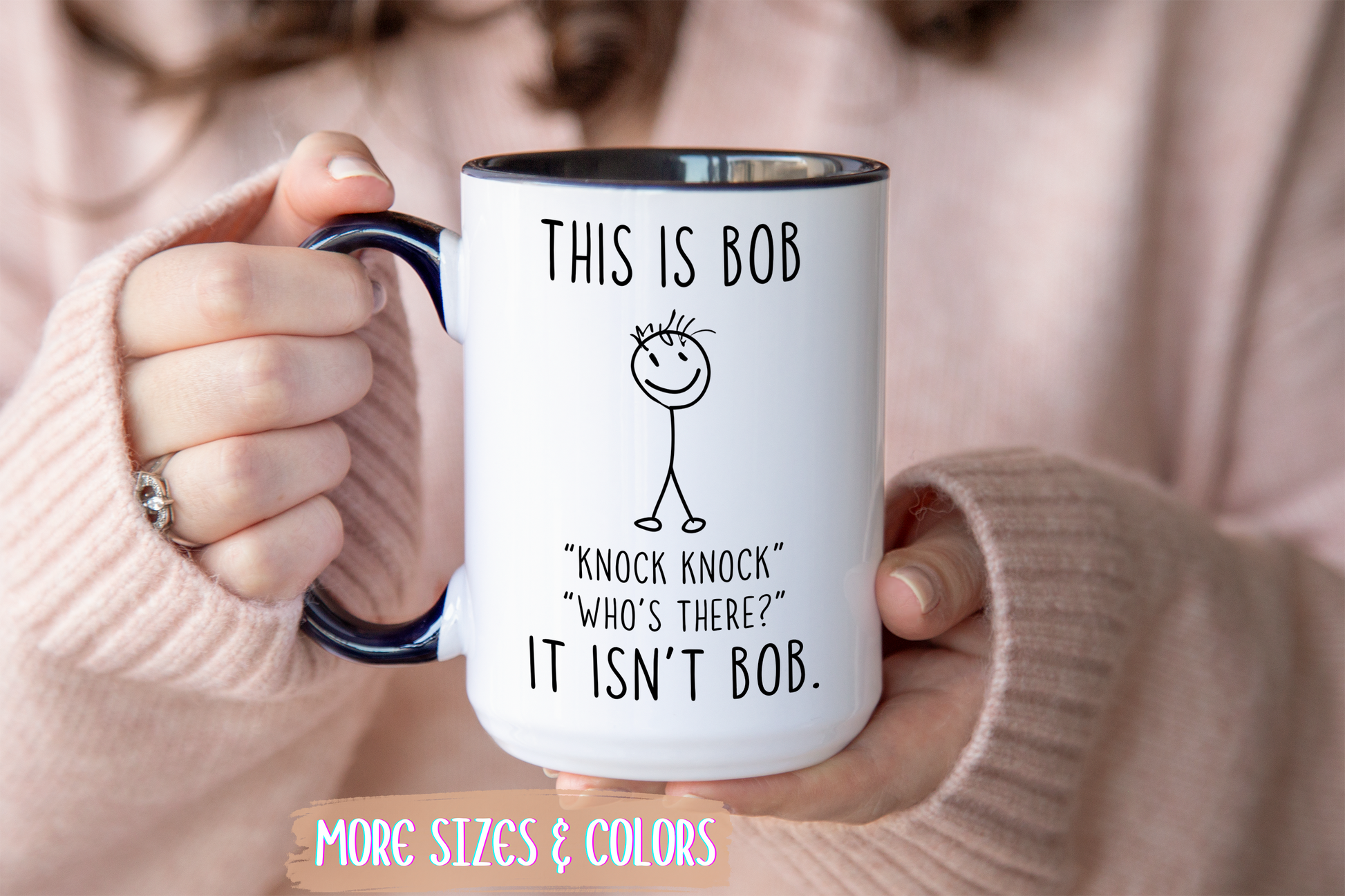 The This Is Bob – Knock Knock It Isn’t Bob mug brings classic stick figure humor to your morning coffee routine. It’s the perfect custom made gift for anyone who loves dad jokes, funny office mugs, or a good laugh before that first sip of caffeine.