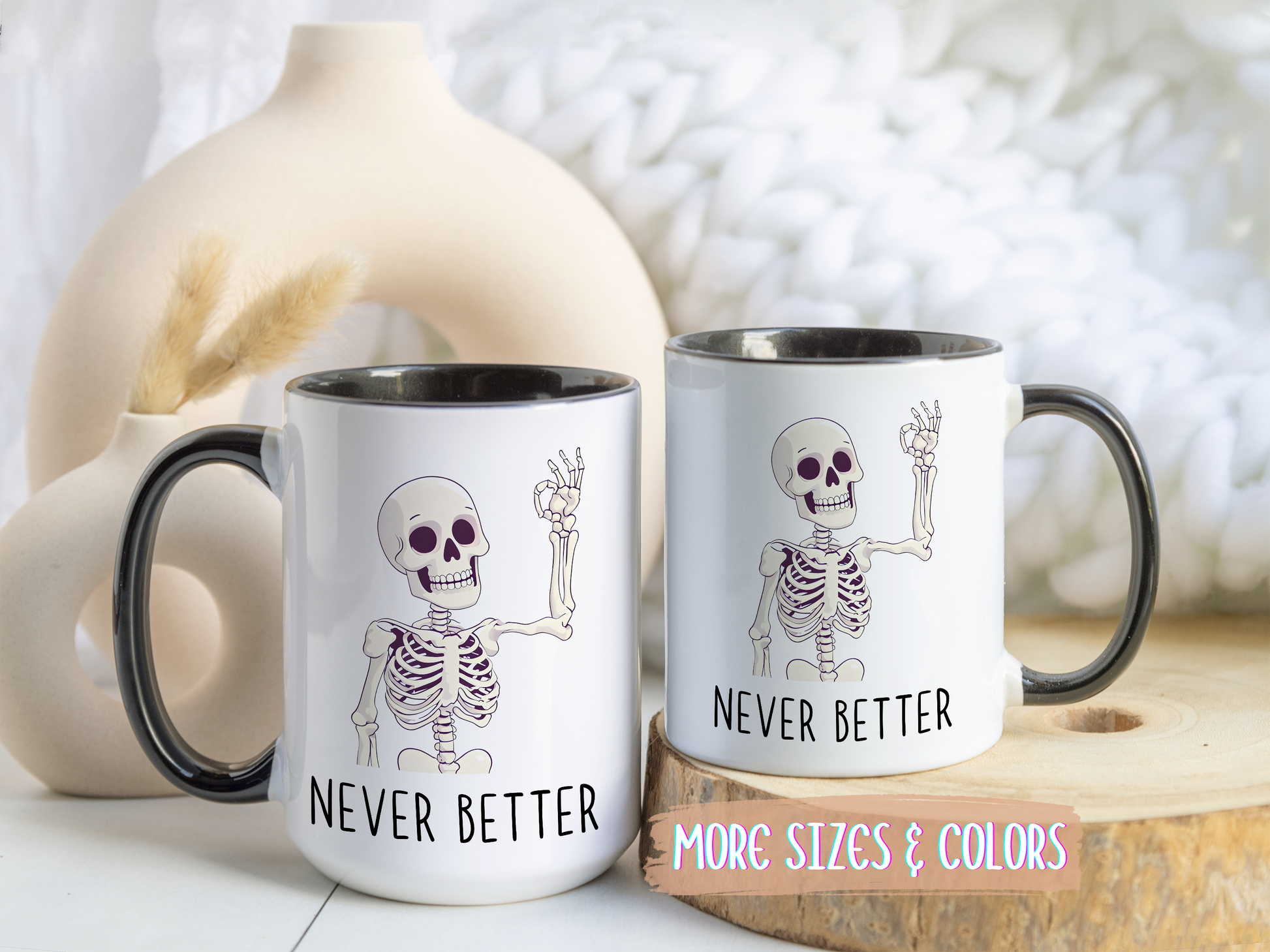 Never Better Skeleton Mug | Funny Halloween Coffee Cup | Custom Made Dark Humor Gift
