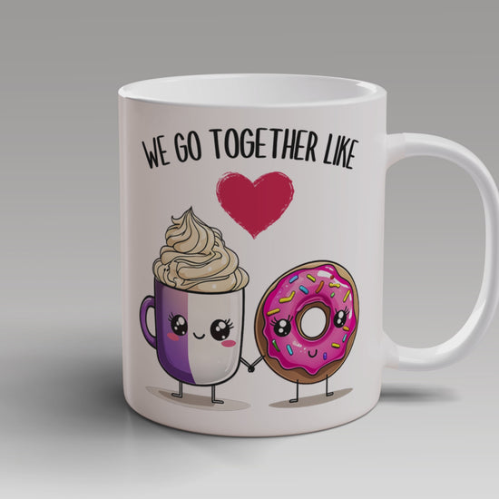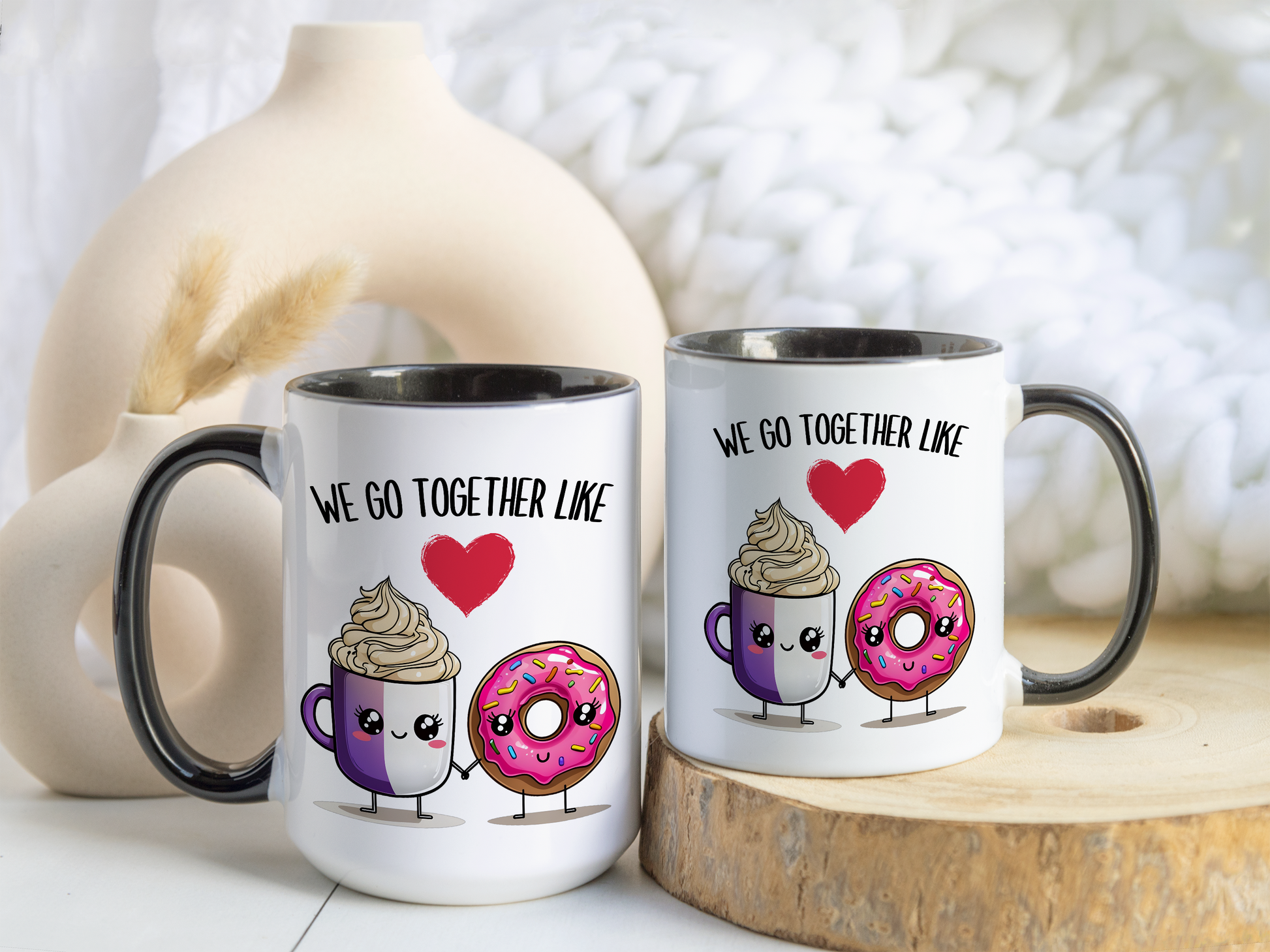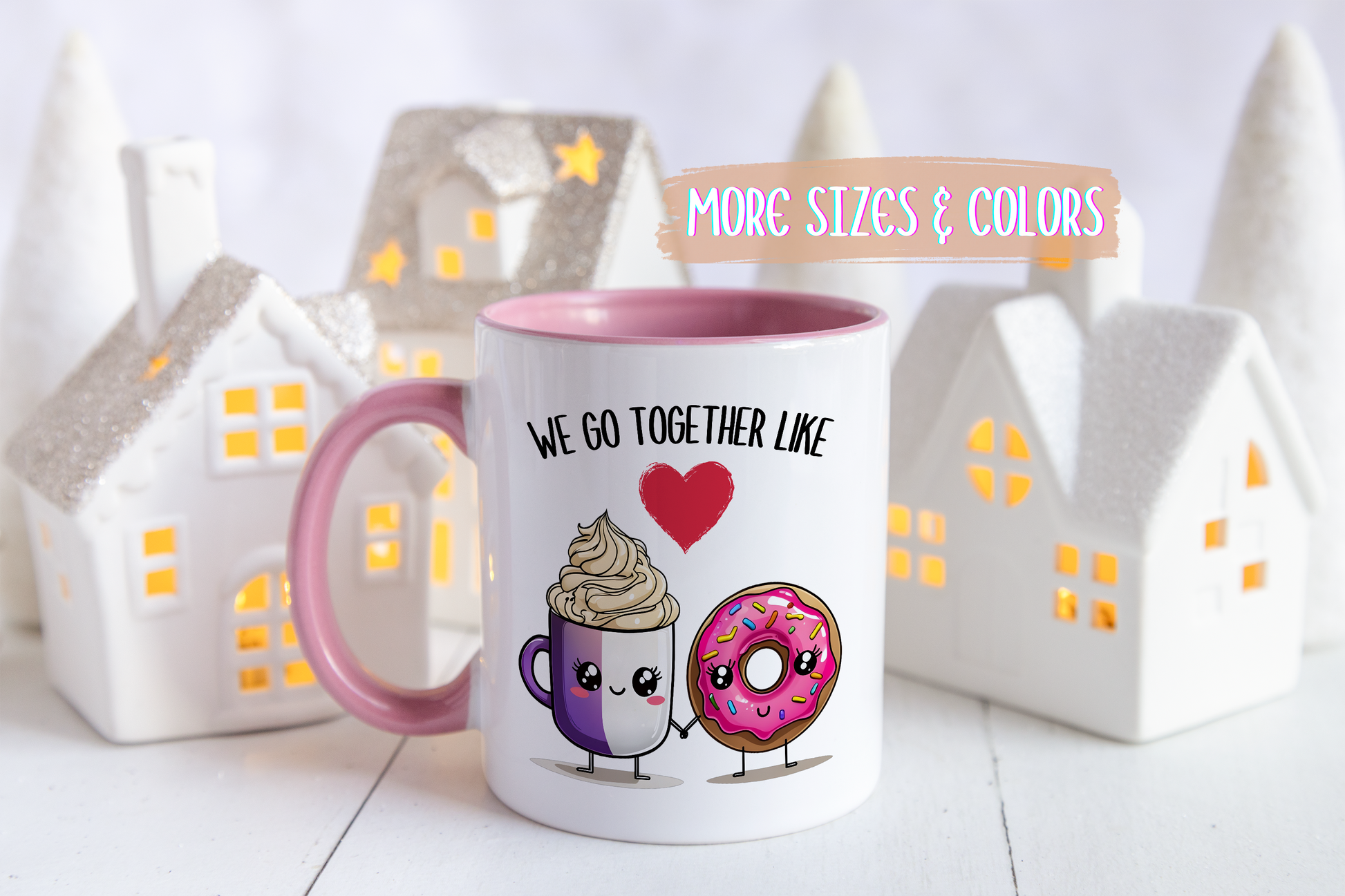 We Go Together Like Coffee and Donuts Mug – Cute Couple Mug | Funny Valentine’s Day Gift for Him or Her