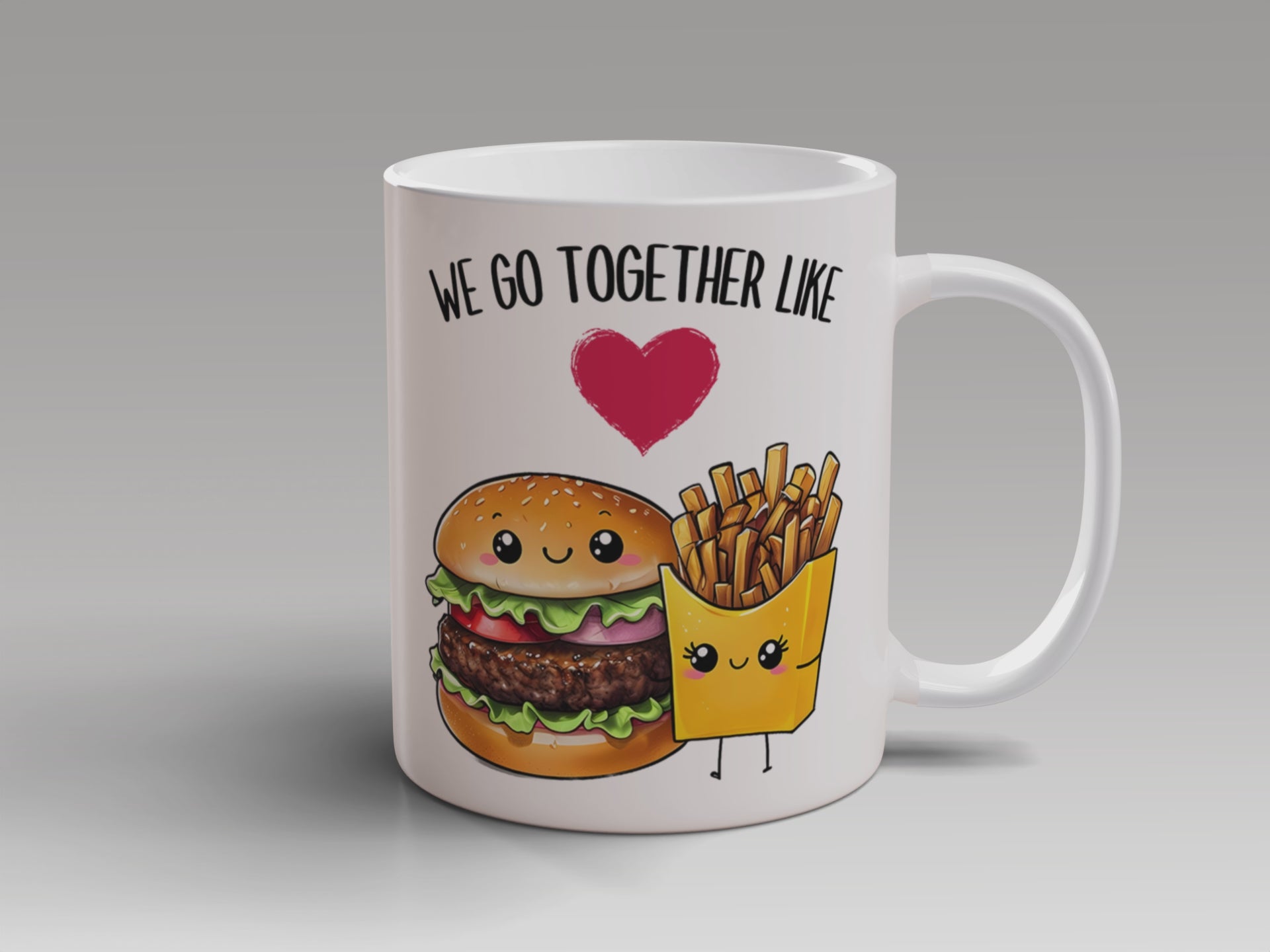 We Go Together Like Burgers and Fries Mug – Cute Couple Mug | Funny Valentine’s Day Gift for Him or Her