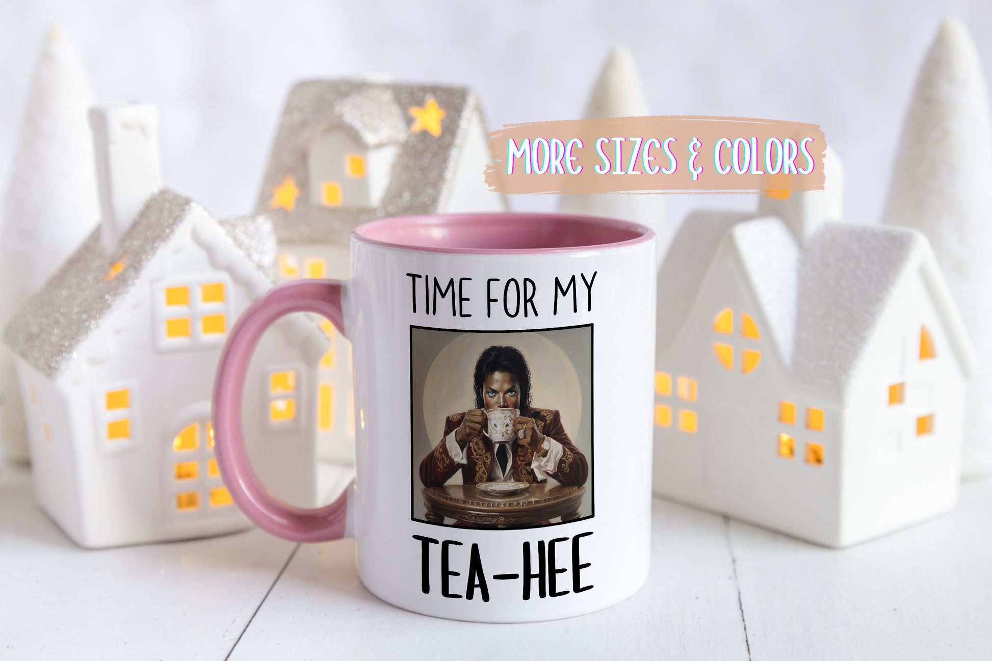 Add a little hee-hee to your morning routine with this hilarious Tea-Hee mug! Featuring a pop-culture-inspired illustration of a stylish performer sipping tea, this custom made mug is perfect for anyone who loves clever wordplay, iconic vibes, and a daily laugh with their coffee or tea.