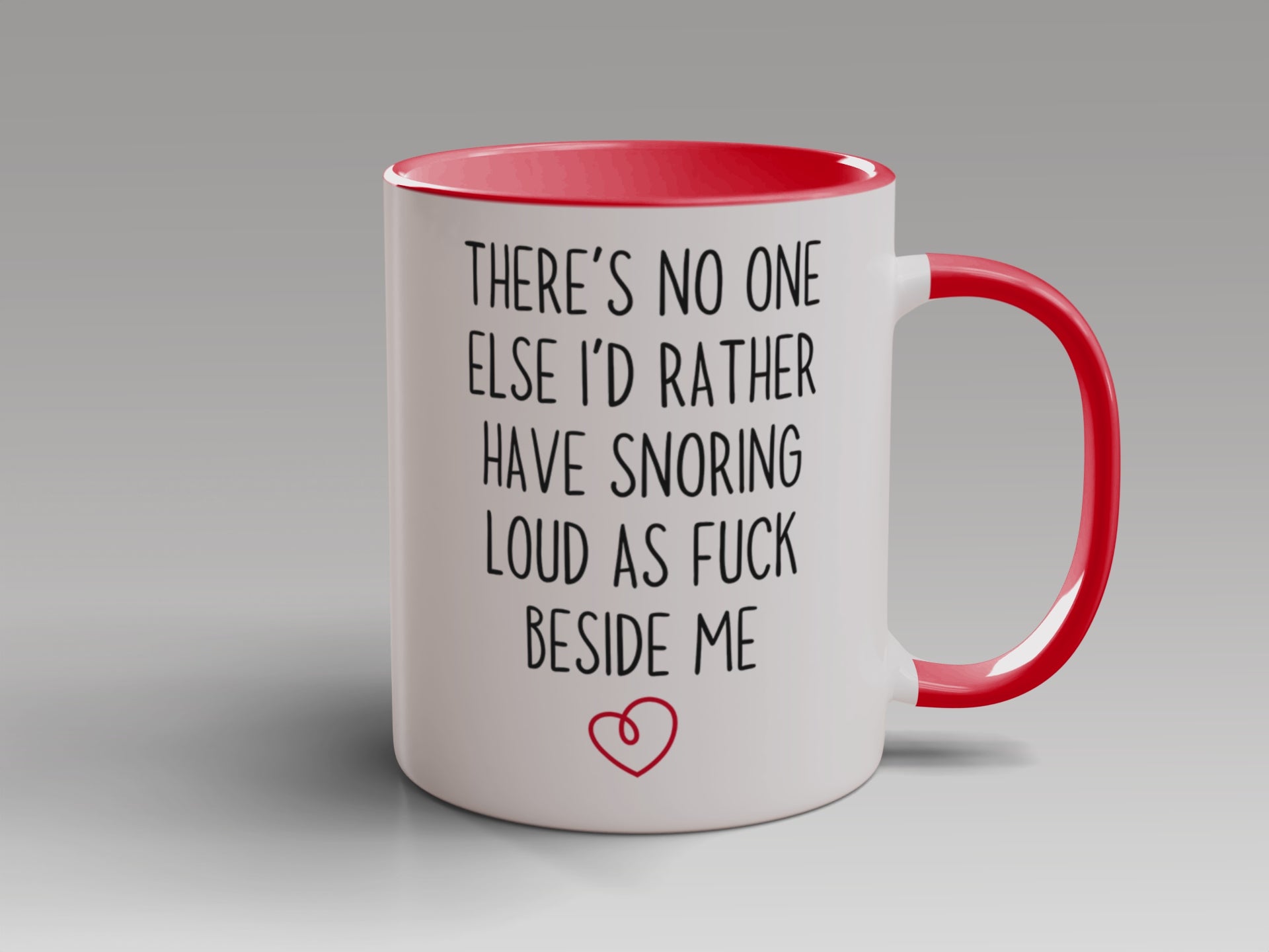 This funny couples mug says what every partner thinks at least once: “There’s no one else I’d rather have snoring loud as fck beside me.”*