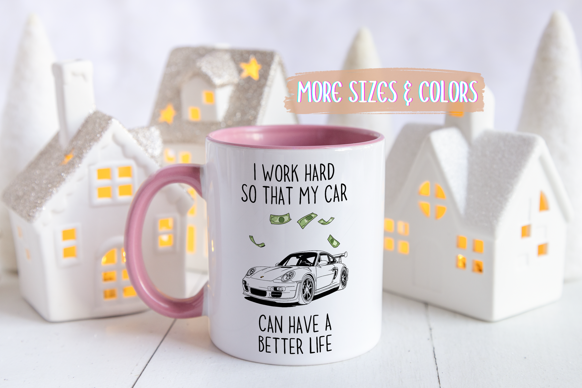 This I Work Hard So That My Car Can Have a Better Life mug is the perfect funny gift for any auto enthusiast. Featuring a clean line-art sports car with floating dollar bills, this custom made mug captures the true relationship between a driver and their beloved money-eating machine.