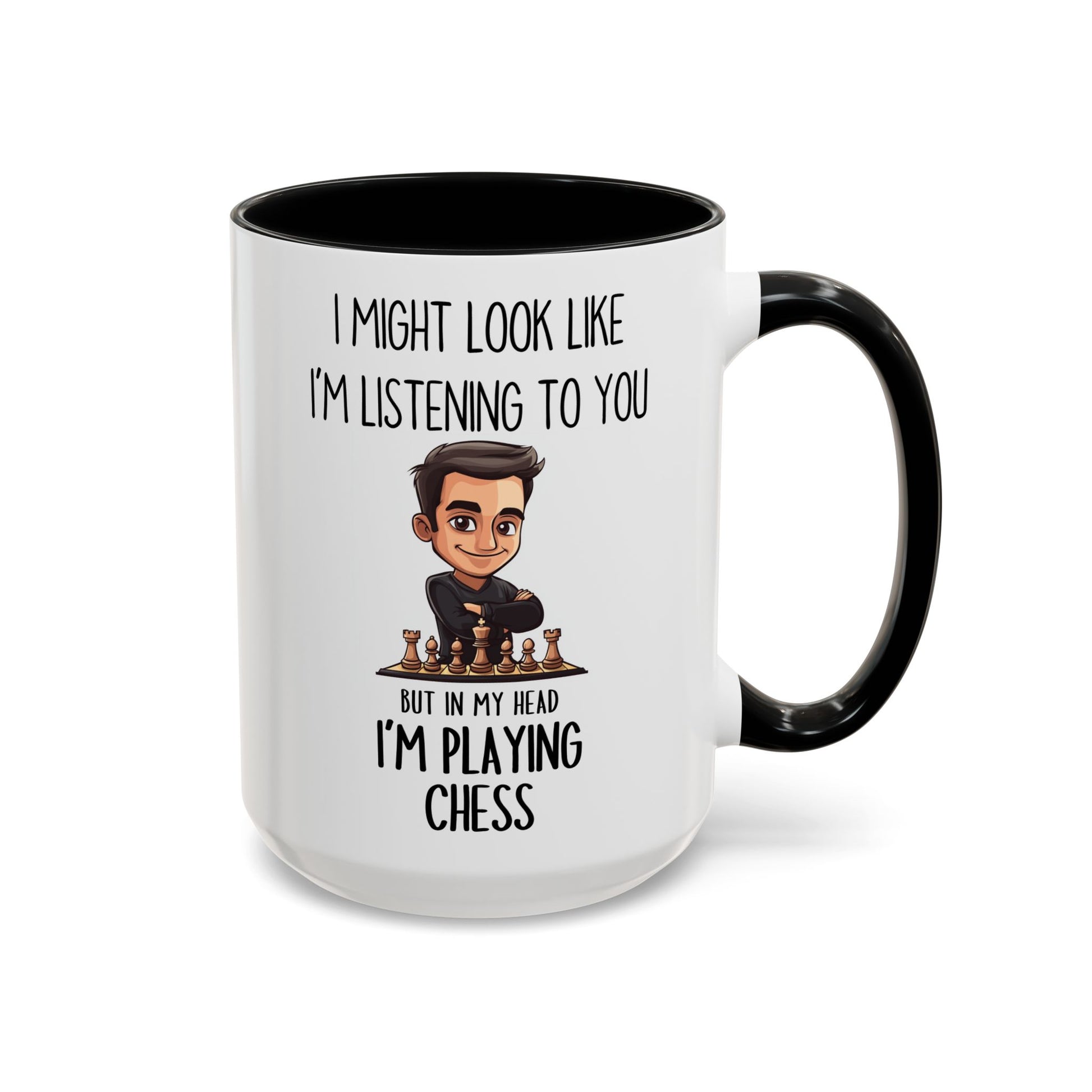 Chess Lover Mug – “I Might Look Like I’m Listening to You… But in My Head I’m Playing Chess” – Custom Made Strategy Gamer Coffee Cup