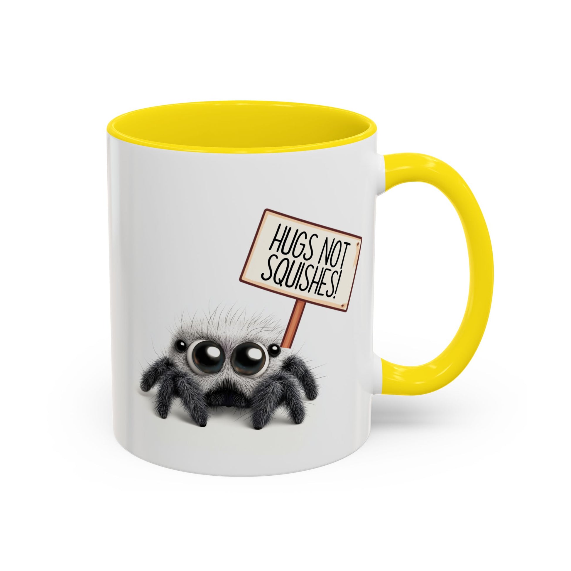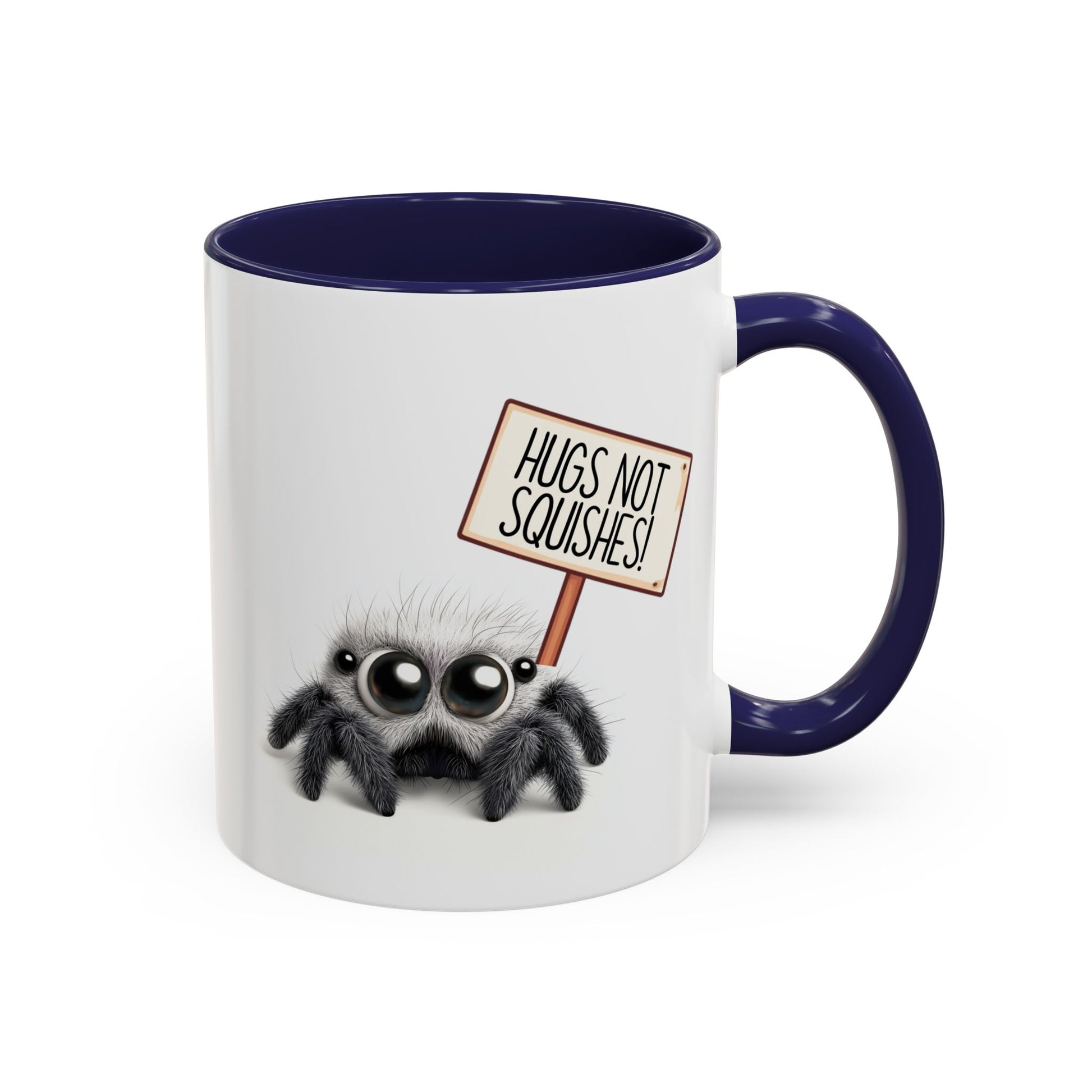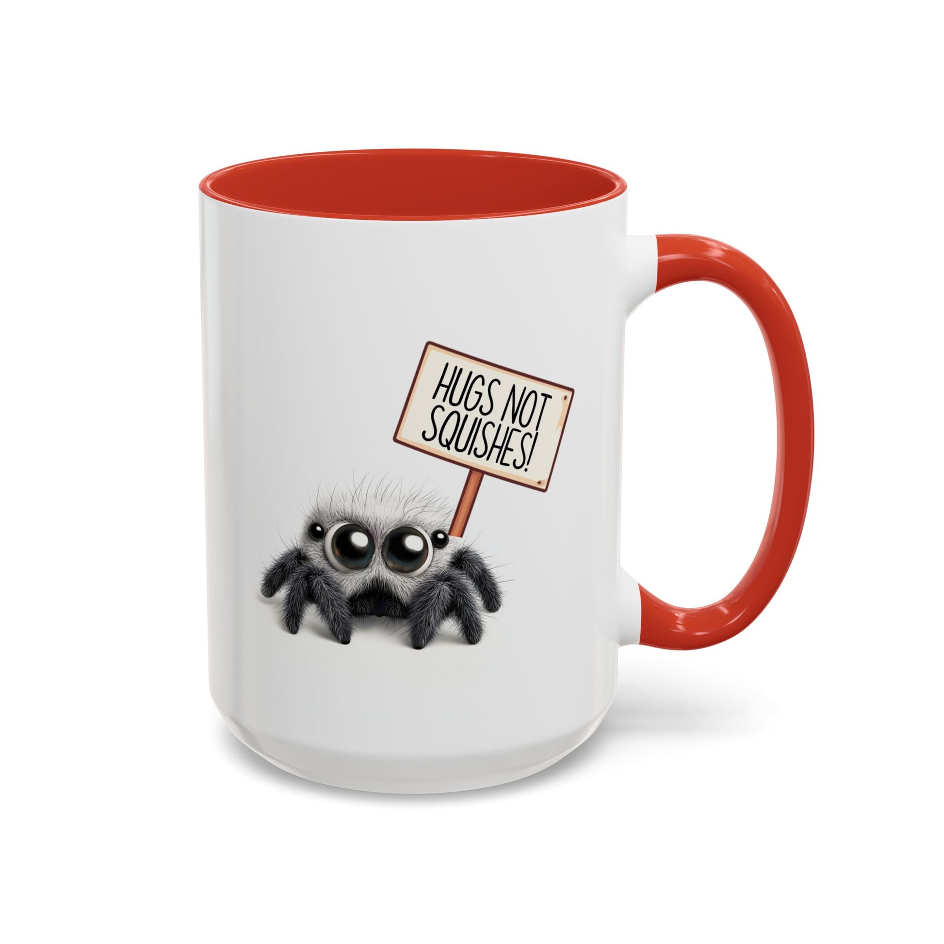 Cute Spider Mug – “Hugs Not Squishes” – Funny Custom Made Gift for Bug Lovers & Nature Fans