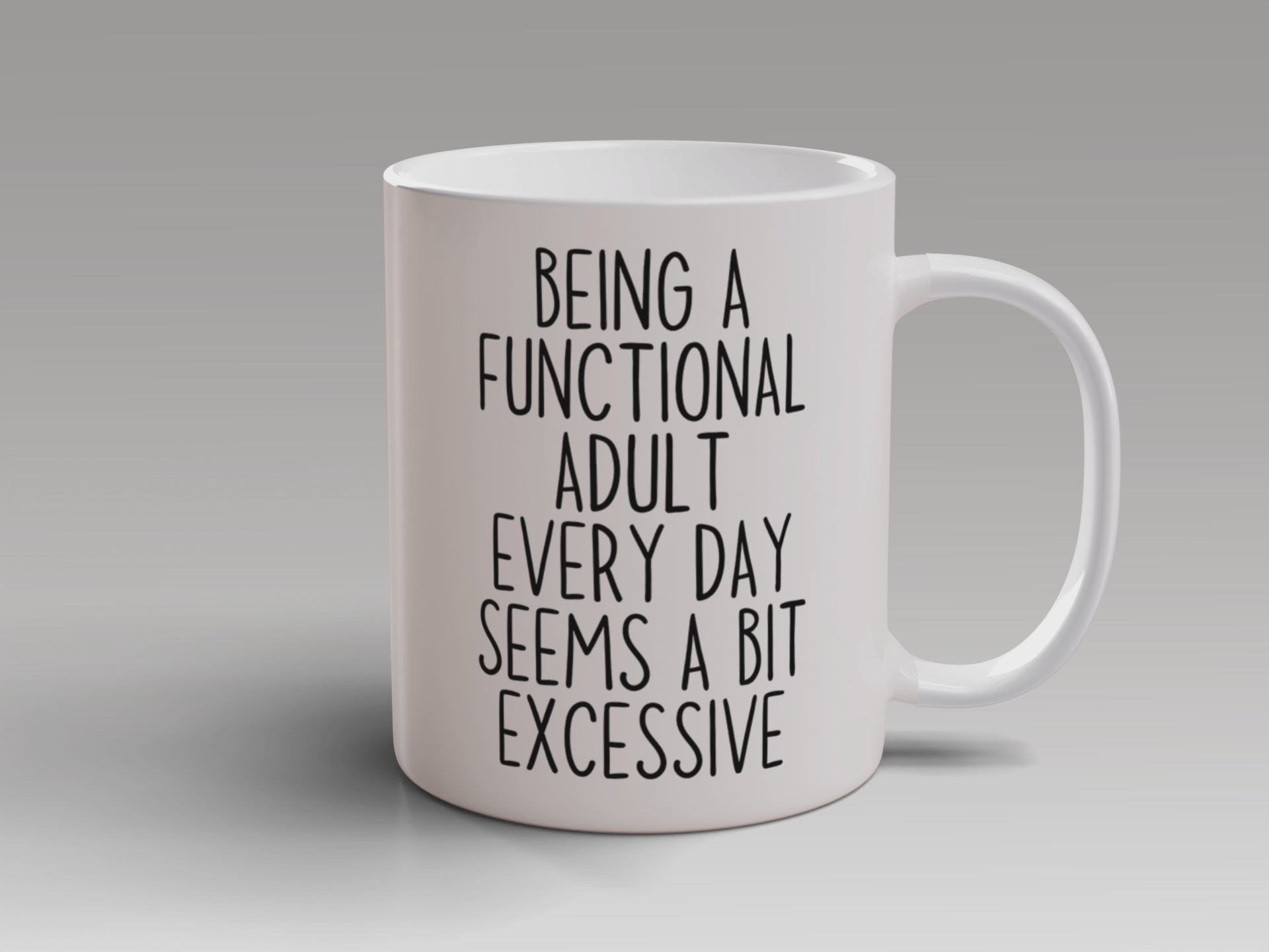 Being A Functional Adult Every Day Seems A Bit Excessive Mug – Funny Relatable Coffee Mug | Sarcastic Gift For Adults