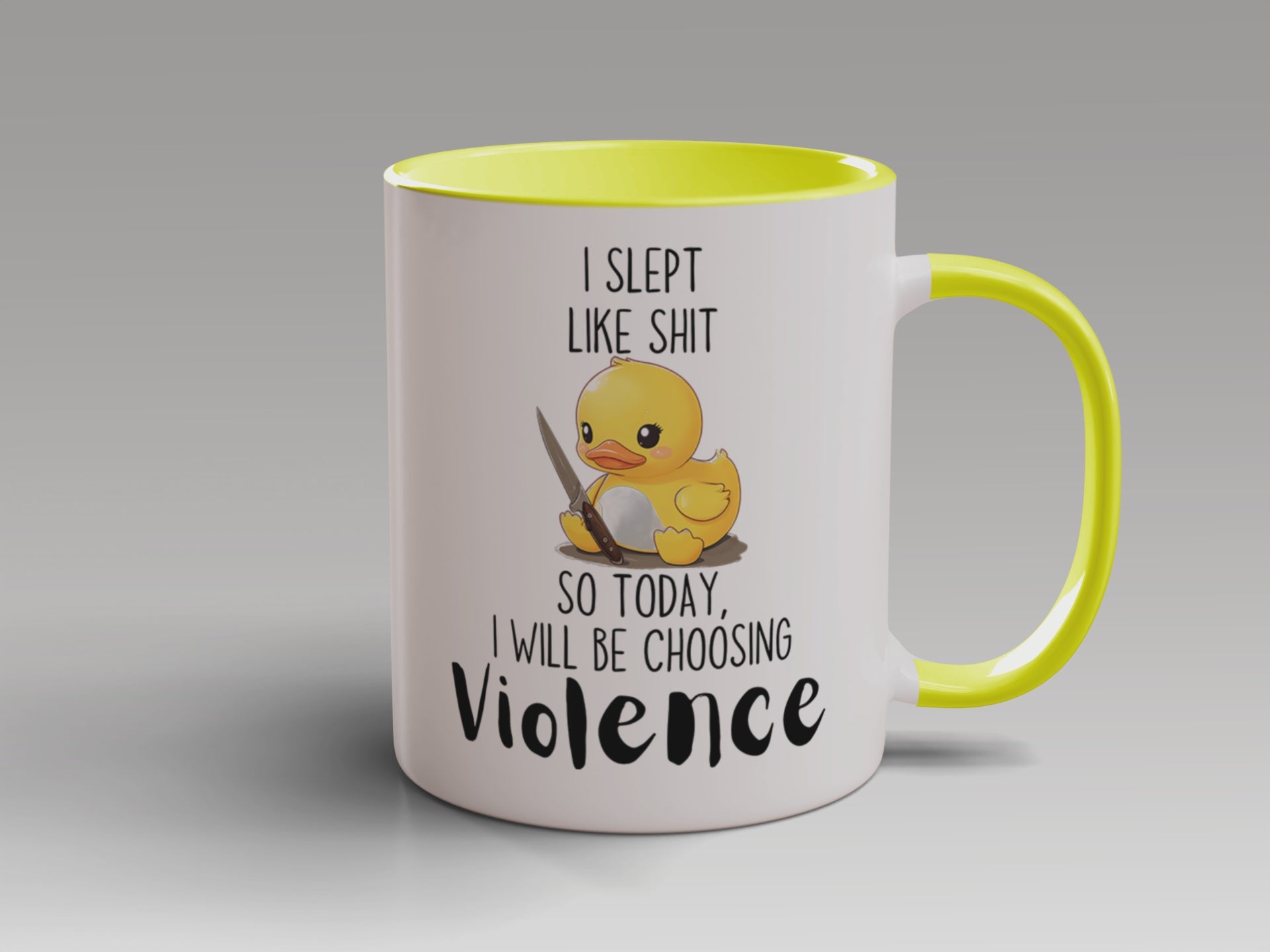 The βI Slept Like Sh*t So Today I Will Be Choosing Violenceβ mug perfectly captures that grumpy, coffee-fueled chaos we all know too well β featuring an adorably angry duck clutching a knife and your morning mood personified.