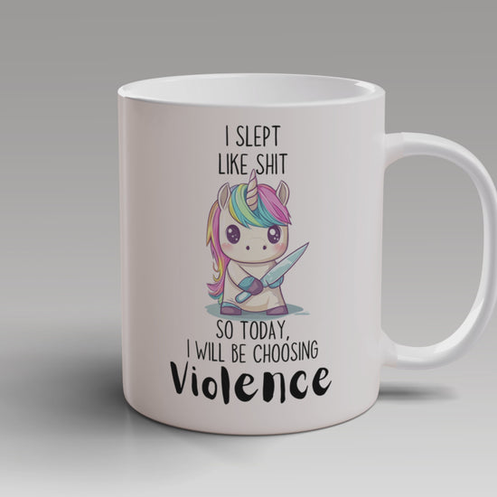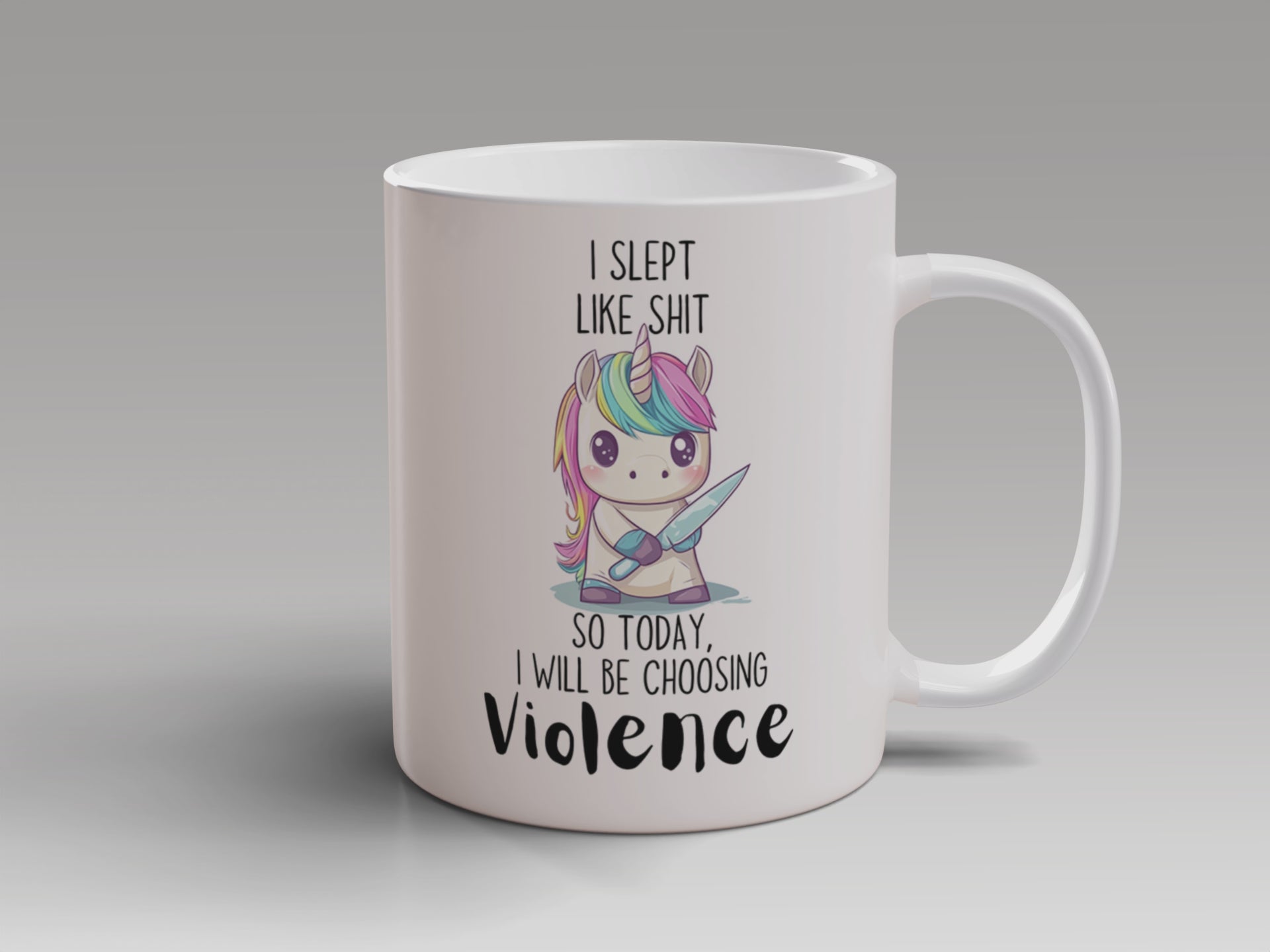 I Slept Like Sh*t So Today I Will Be Choosing Violence Mug β Funny Unicorn Mug | Cute Angry Unicorn Coffee Gift