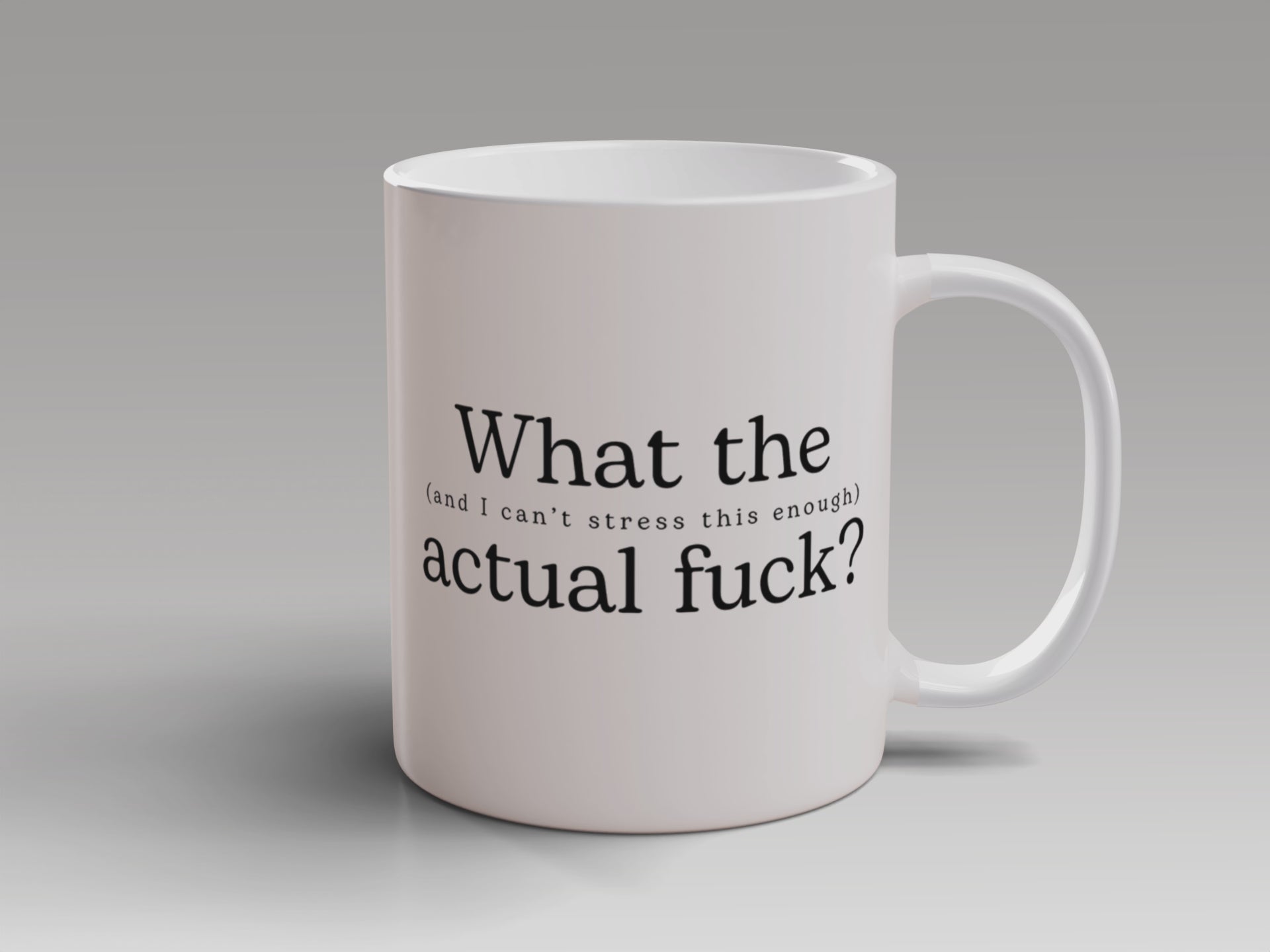 The “What The Actual F* (and I can’t stress this enough)”** mug is made for the truly baffled — the people who witness chaos, nonsense, or Monday mornings on a regular basis. Whether it’s work drama, family shenanigans, or just life being weird again, this custom made mug says exactly what you’re thinking (but can’t always say out loud).
