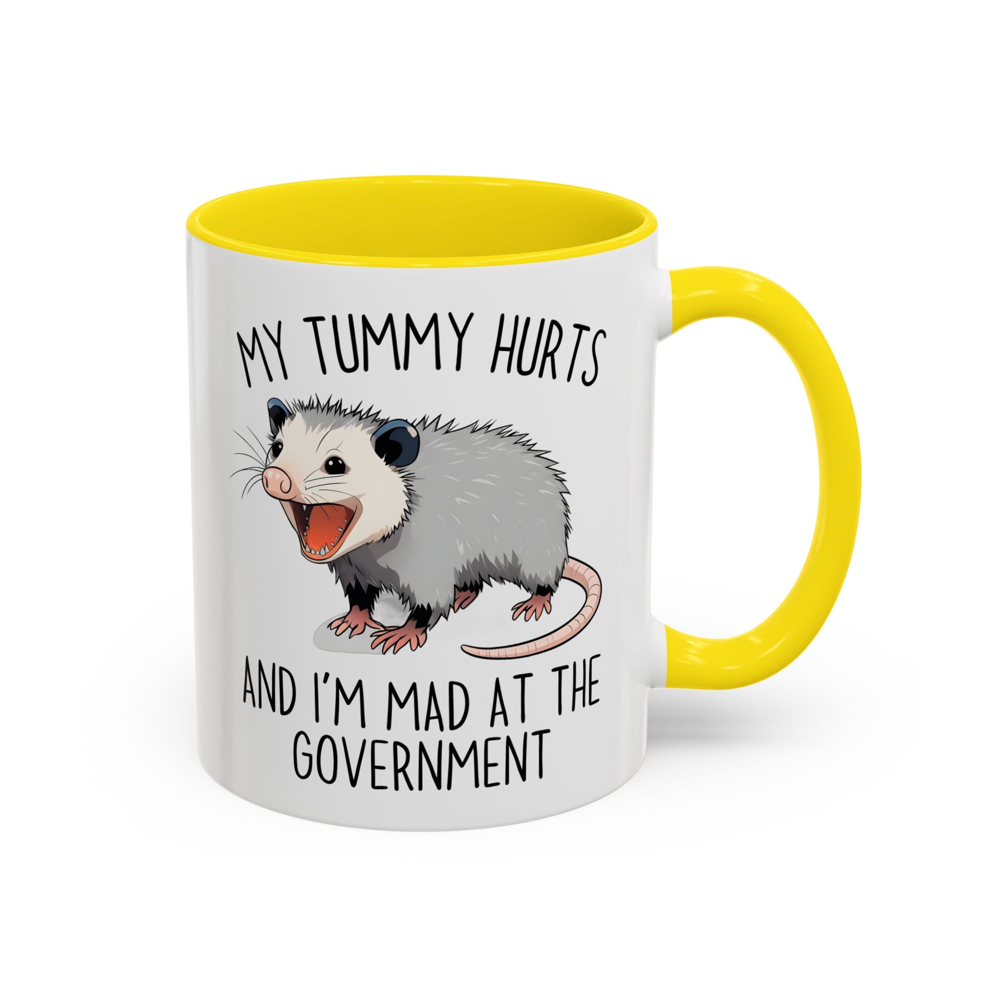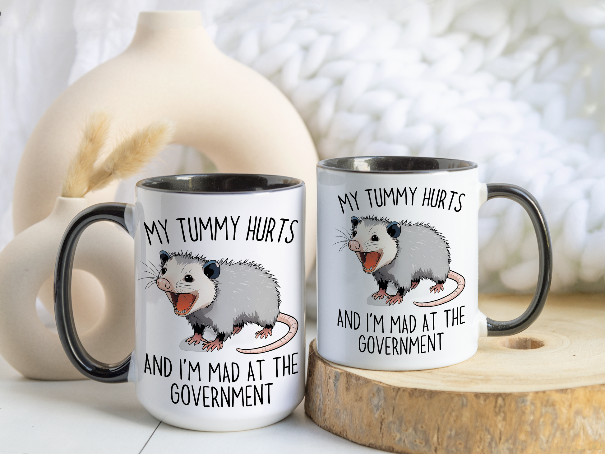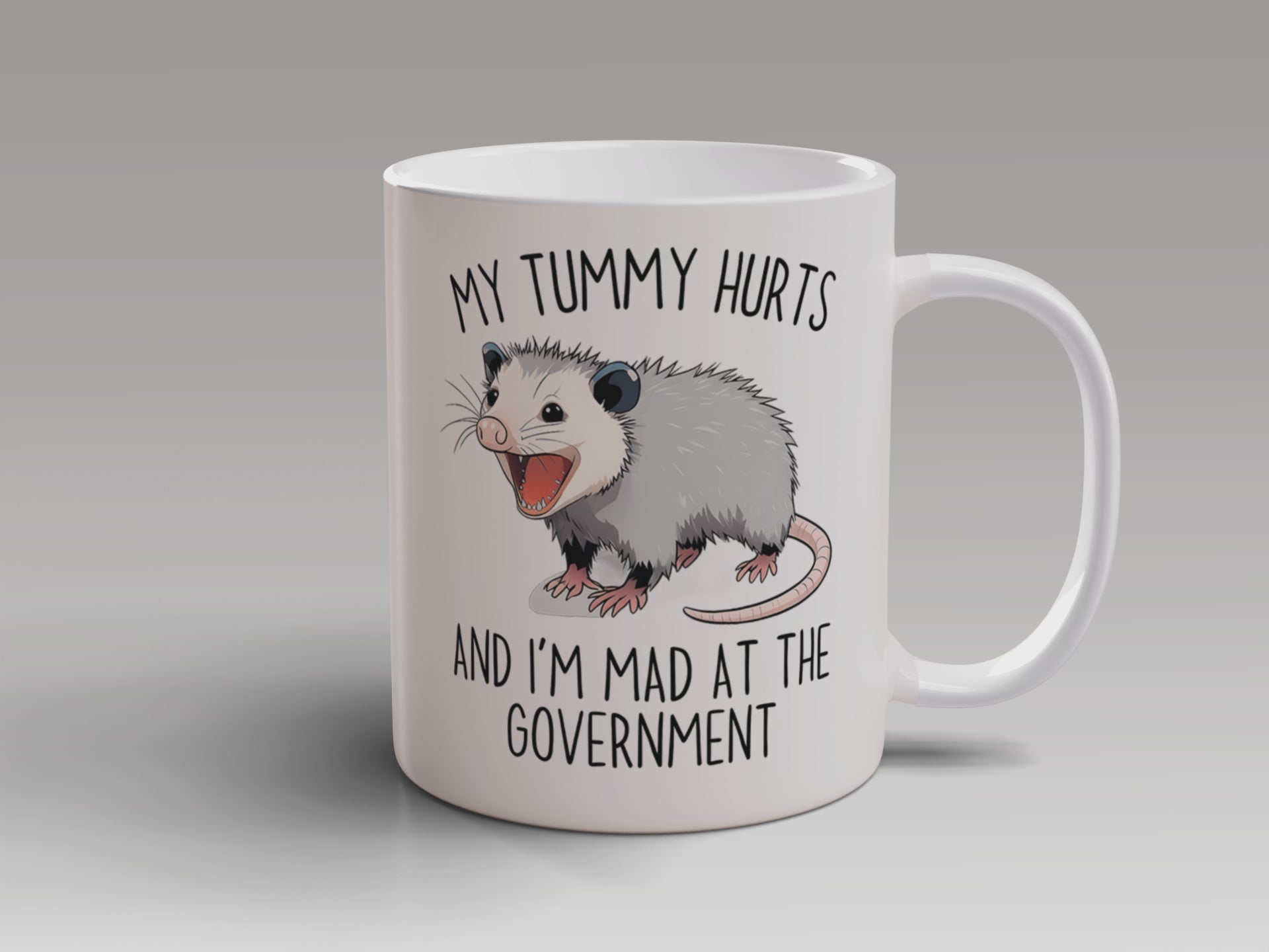 My Tummy Hurts and I’m Mad at the Government Mug – Funny Possum Coffee Cup | Relatable Meme Gift