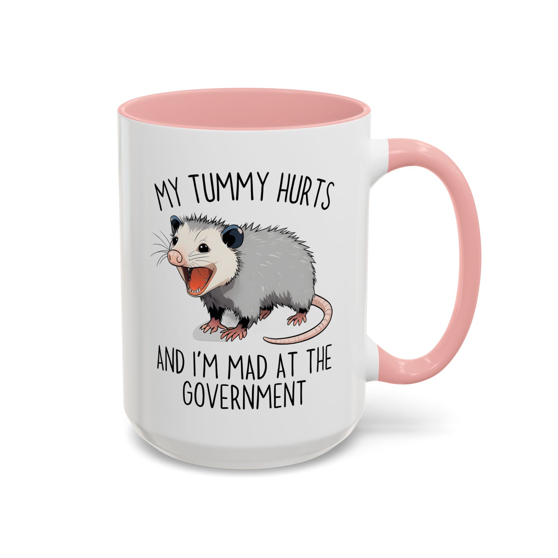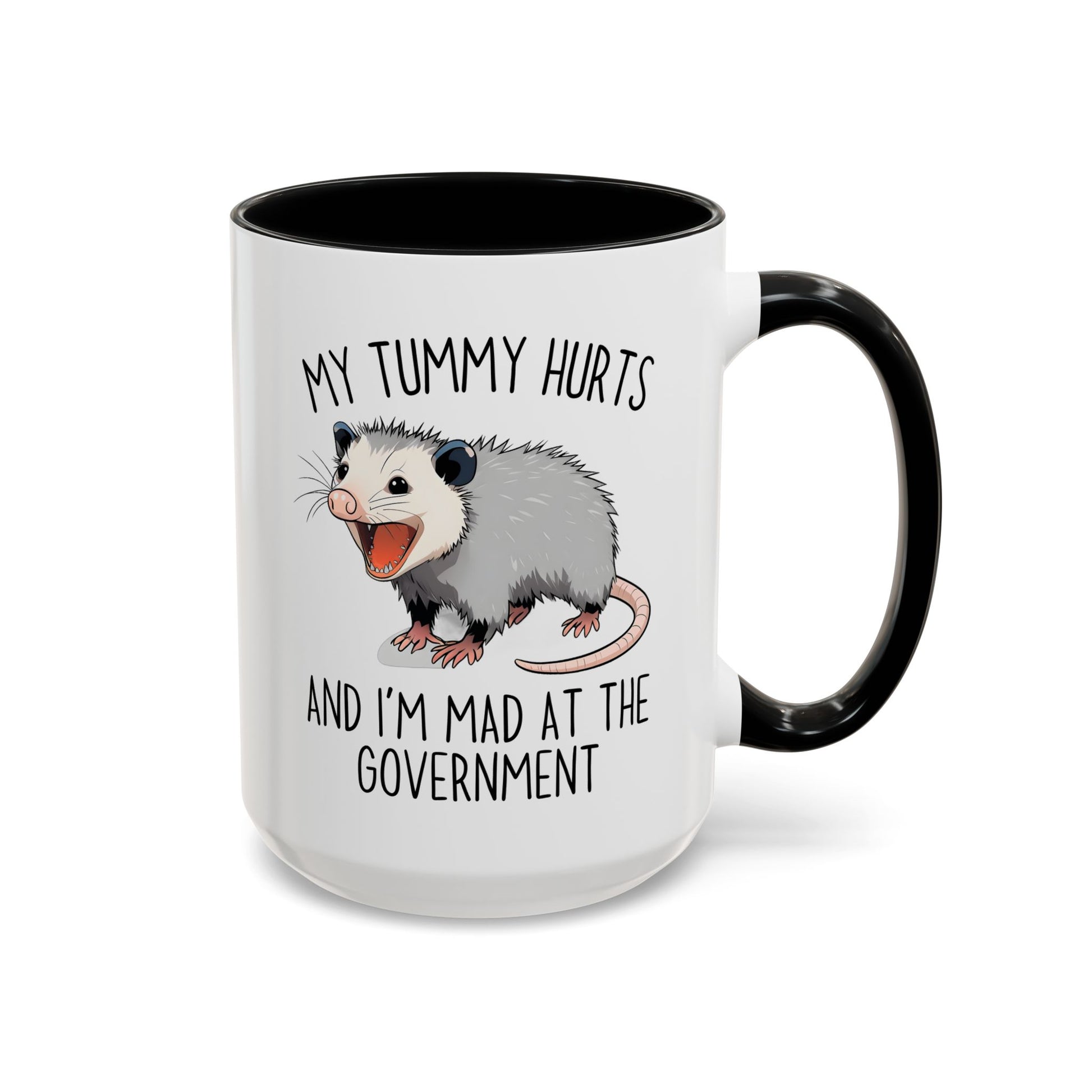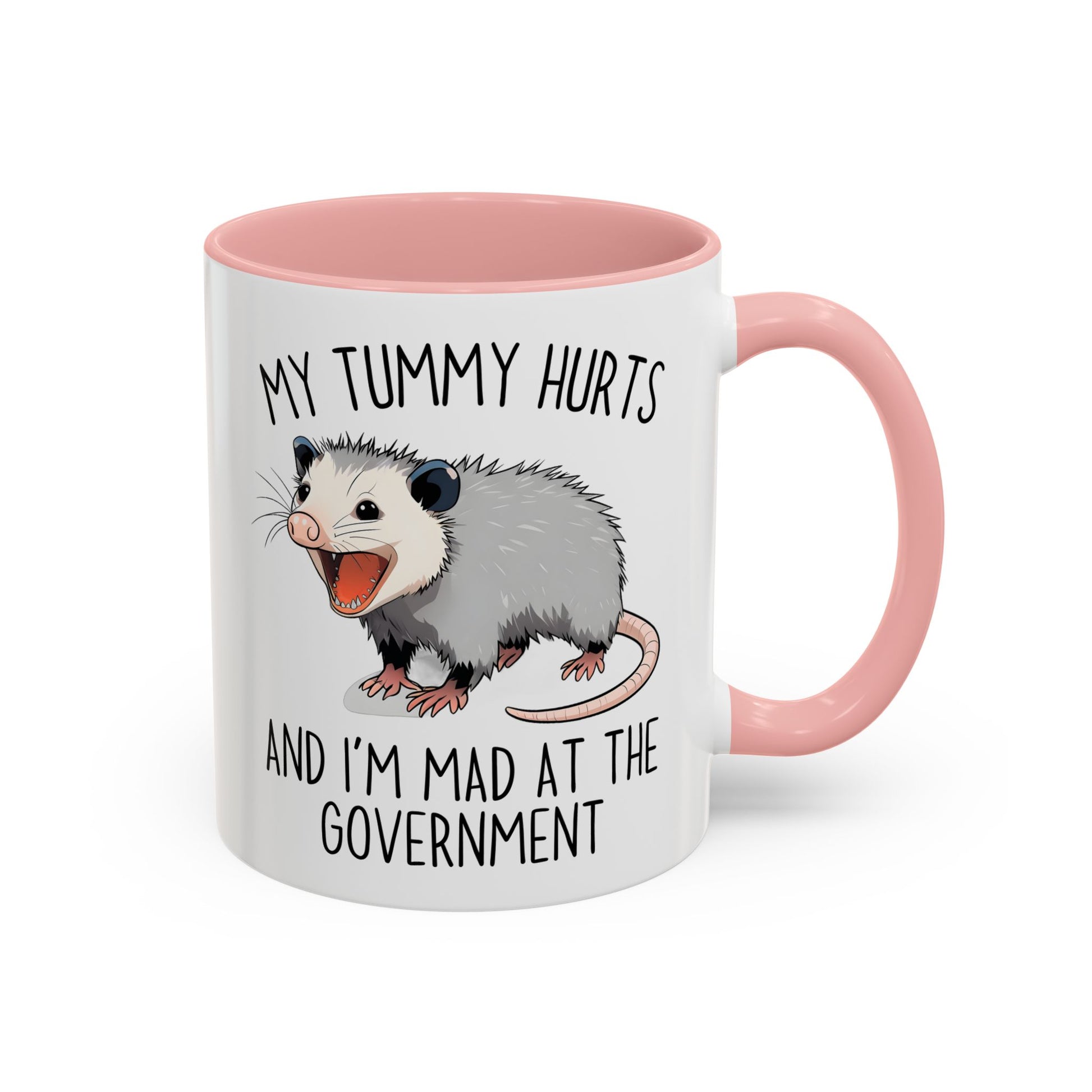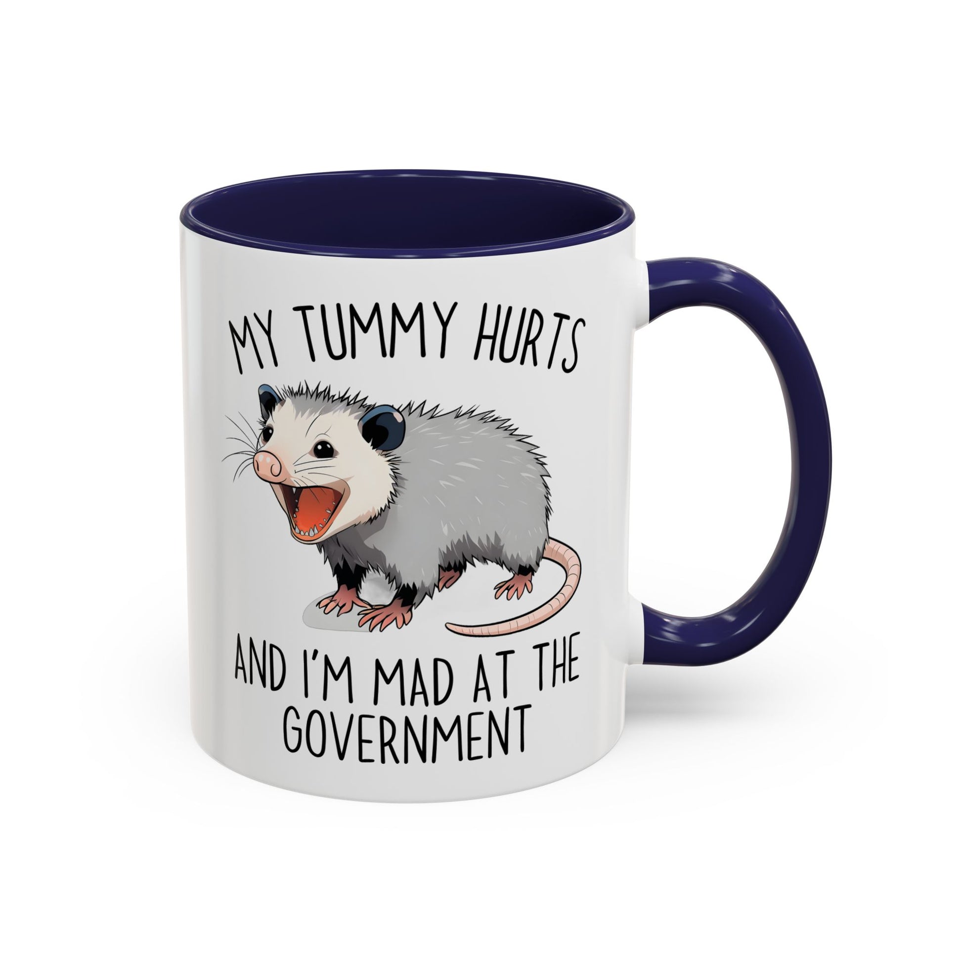 My Tummy Hurts and I’m Mad at the Government Mug – Funny Possum Coffee Cup | Relatable Meme Gift