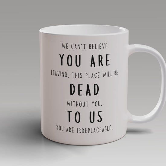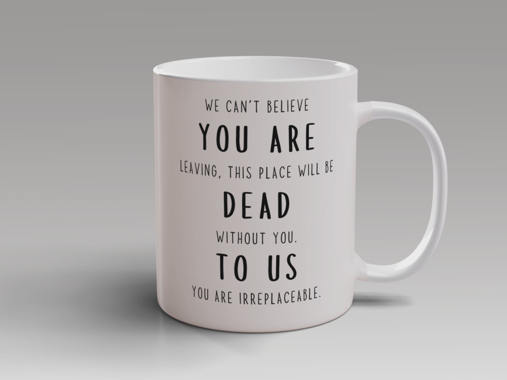 Made from durable ceramic with a glossy finish, this custom mug is dishwasher and microwave safe and available in multiple sizes and colors. Whether it’s their last day or a new beginning, this mug will remind them they were truly irreplaceable (and a little bit dramatic, in the best way).