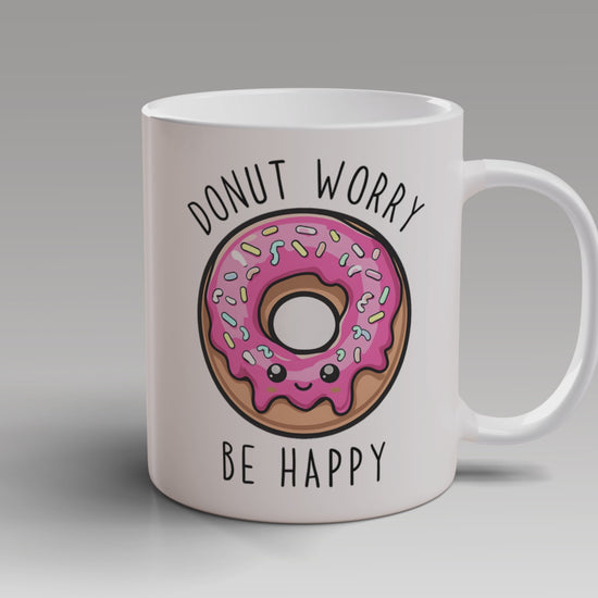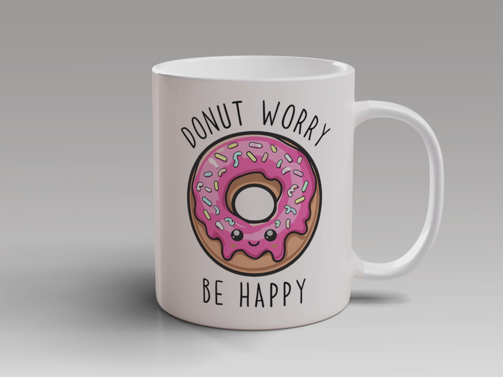 Donut Worry Be Happy Mug β Cute Donut Coffee Cup | Funny Positive Quote Mug | Custom Made Gift